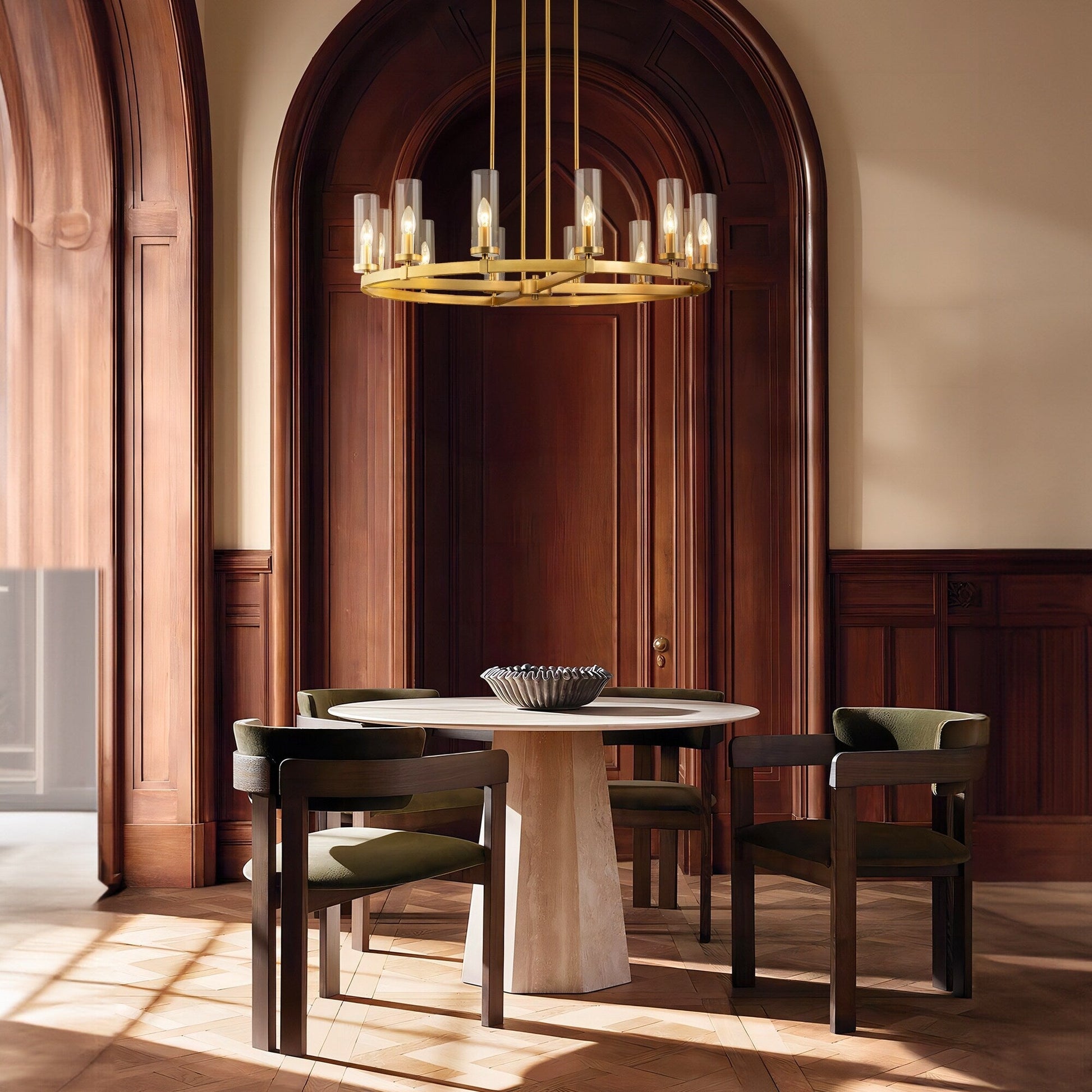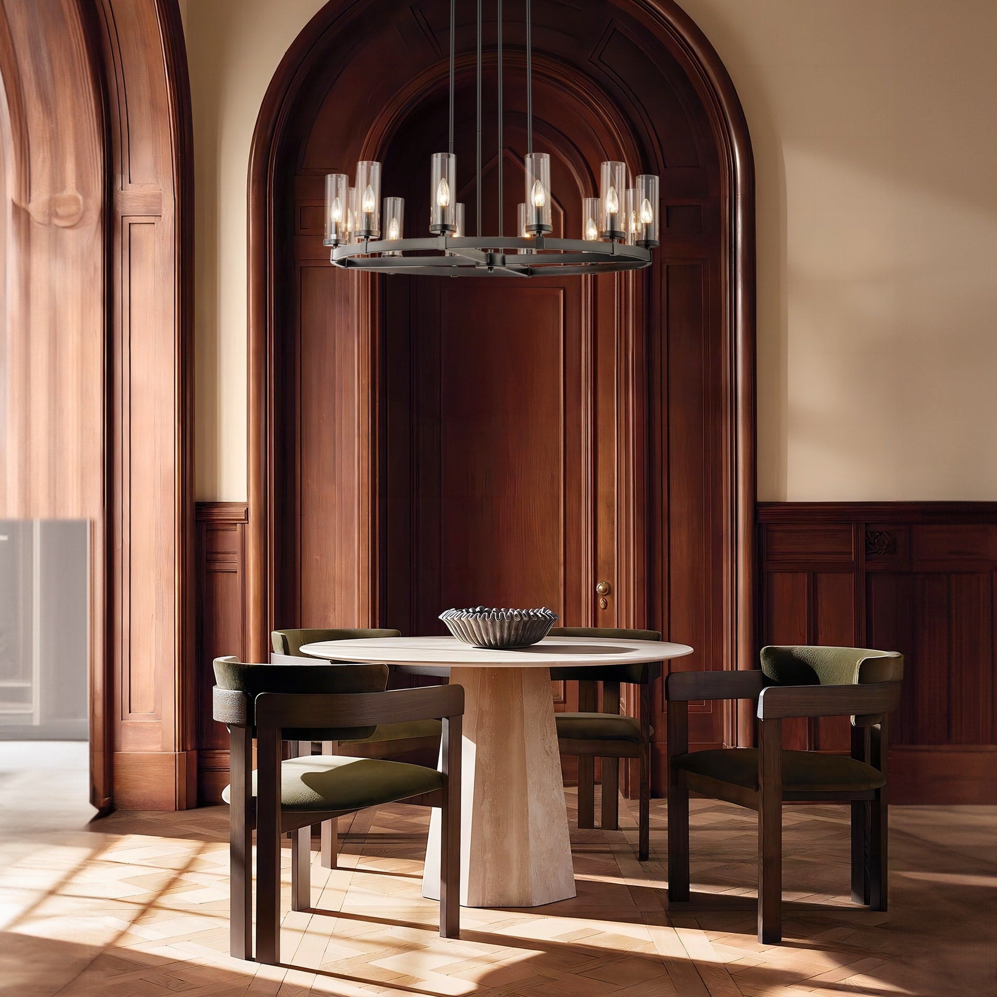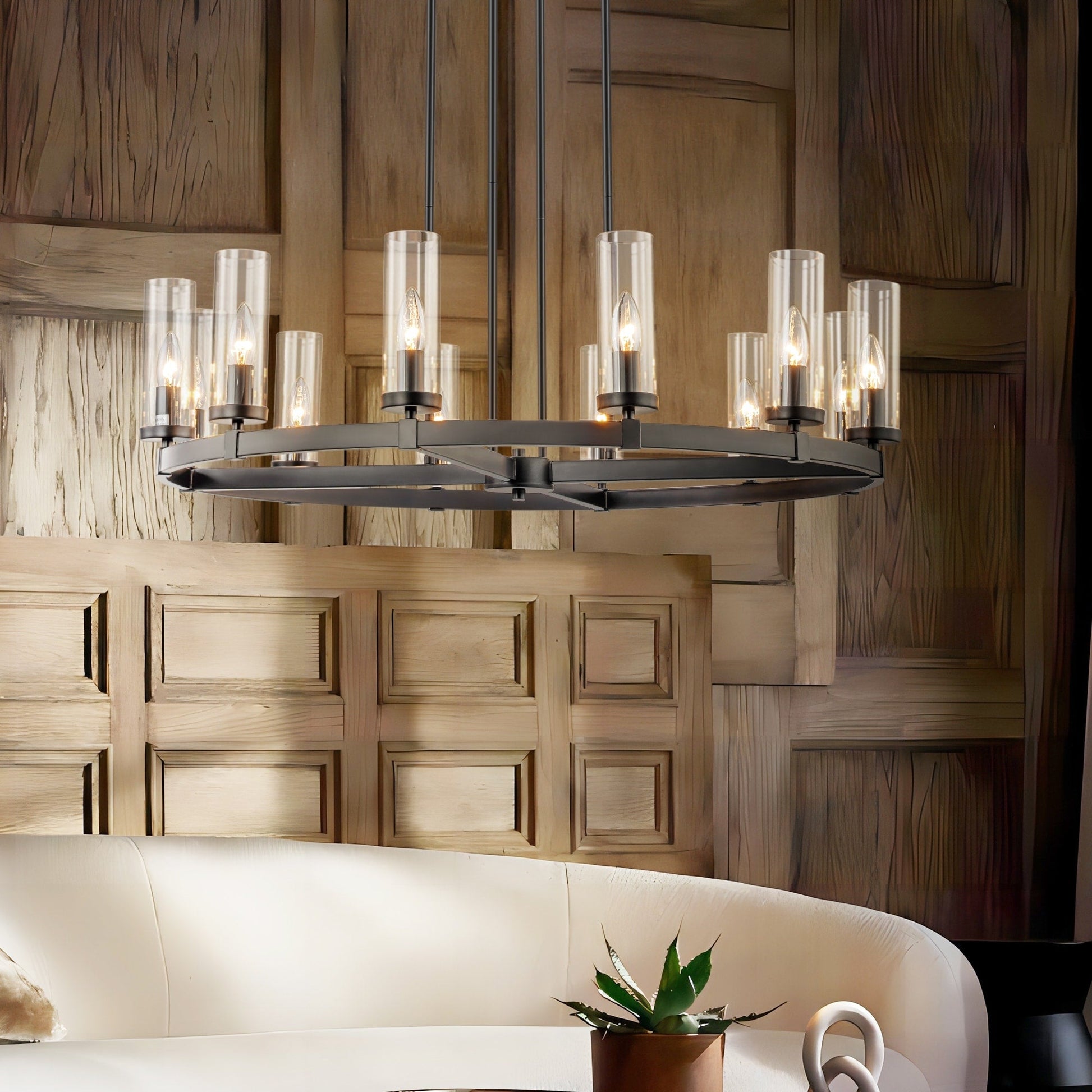 12-Light Mid-Century Modern Cylinder Clear Glass Wagon Wheel...