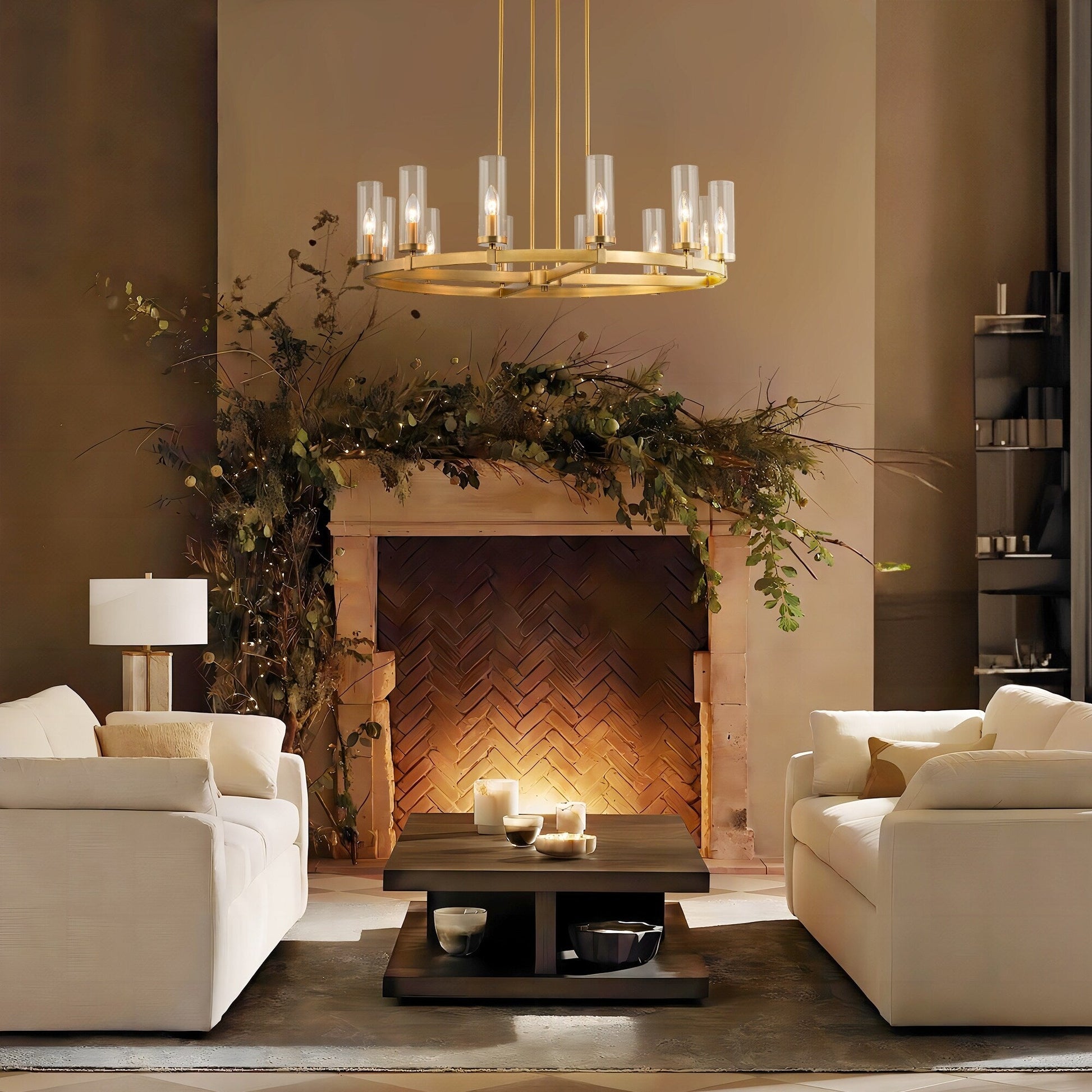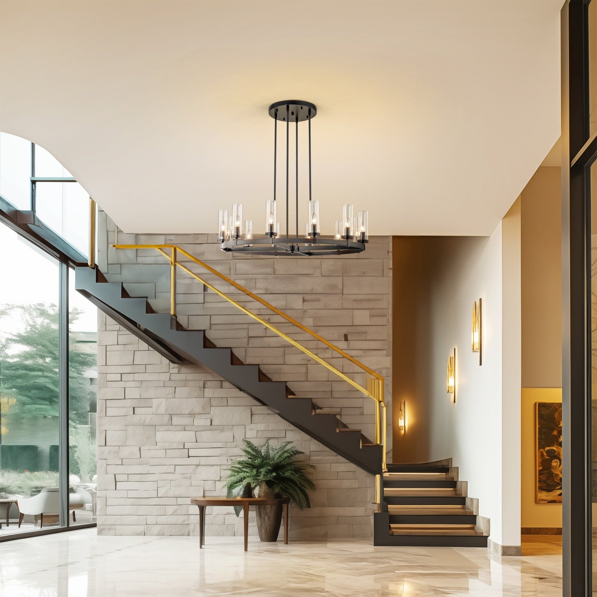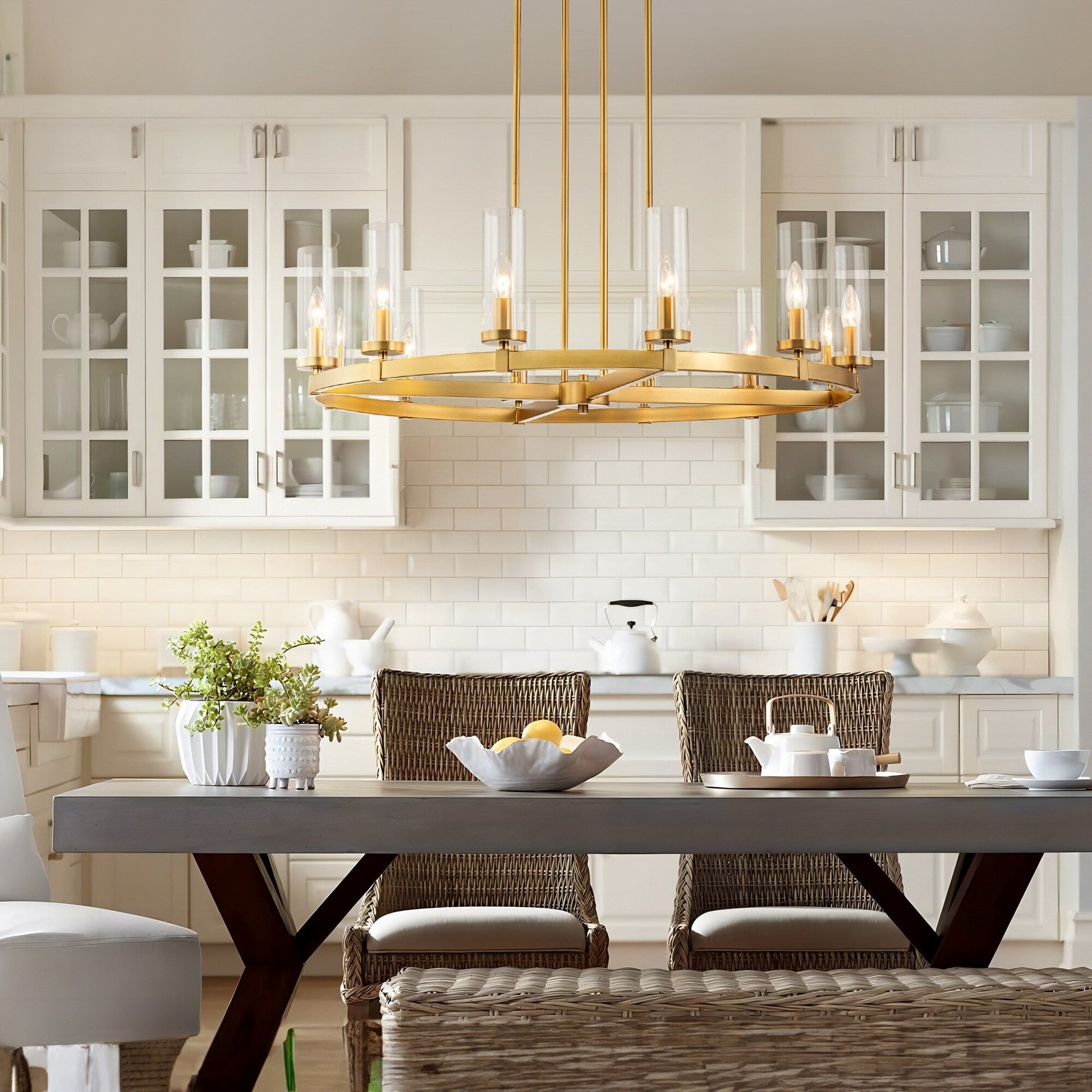 12-Light Mid-Century Modern Cylinder Clear Glass Wagon Wheel...