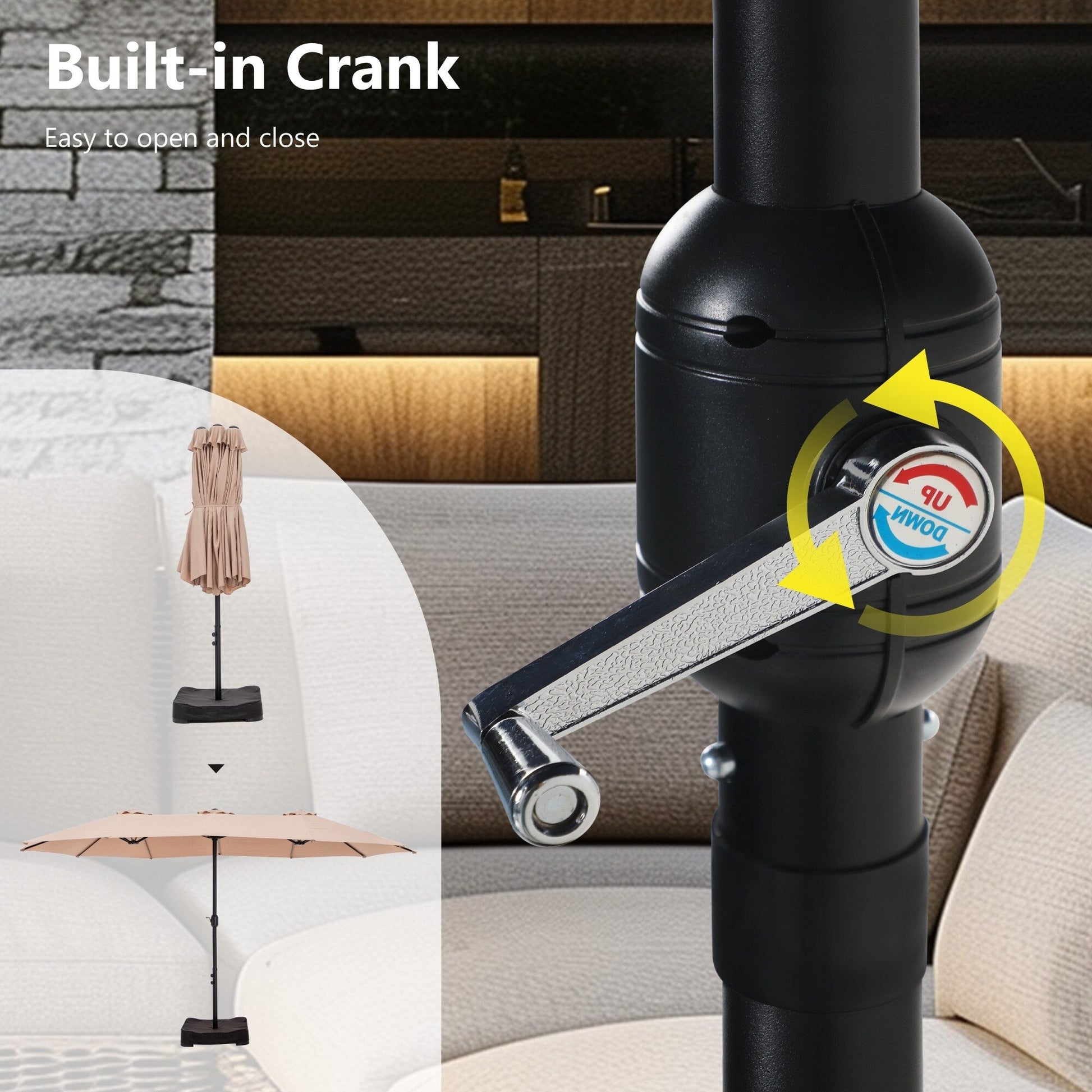 15-foot Rectangular Crank Double-sided Outdoor Market Umbrella Solar LED Lighted Patio Umbrella with Base Included