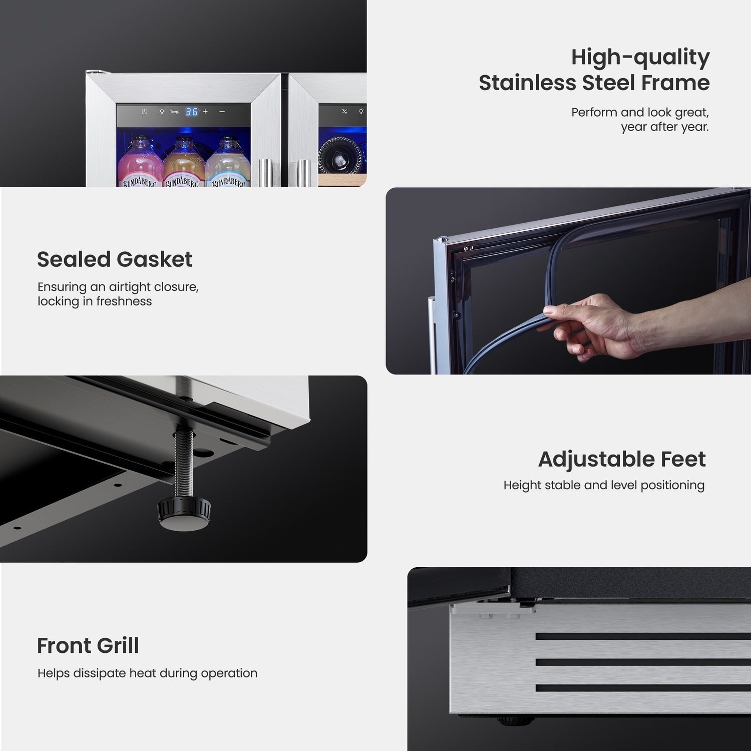 Secure and Stylish Design: UV-resistant glass and stainless steel construction add durability. This wine beverage cooler also complements any home decor with its sleek design.