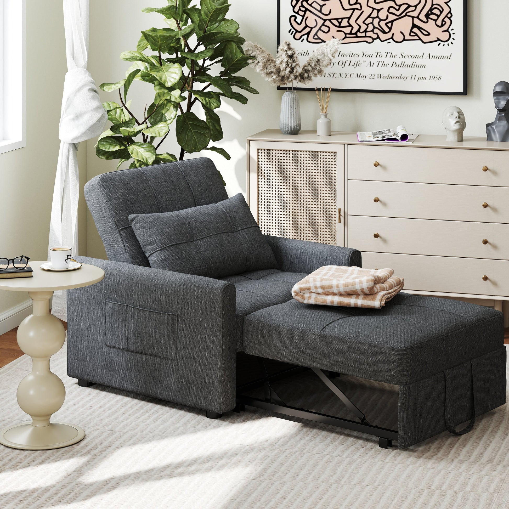Multifunctional sofa: This sleeper sofa bed that can be converted into a single bed and a lounge chair at will. It can be pulled out, so it is called pull out sleeper chair sofa. It can not only easily deal with uninvited guests in the family, but also be used a comfortable back chair. The convertible design provides maximum flexibility in space.