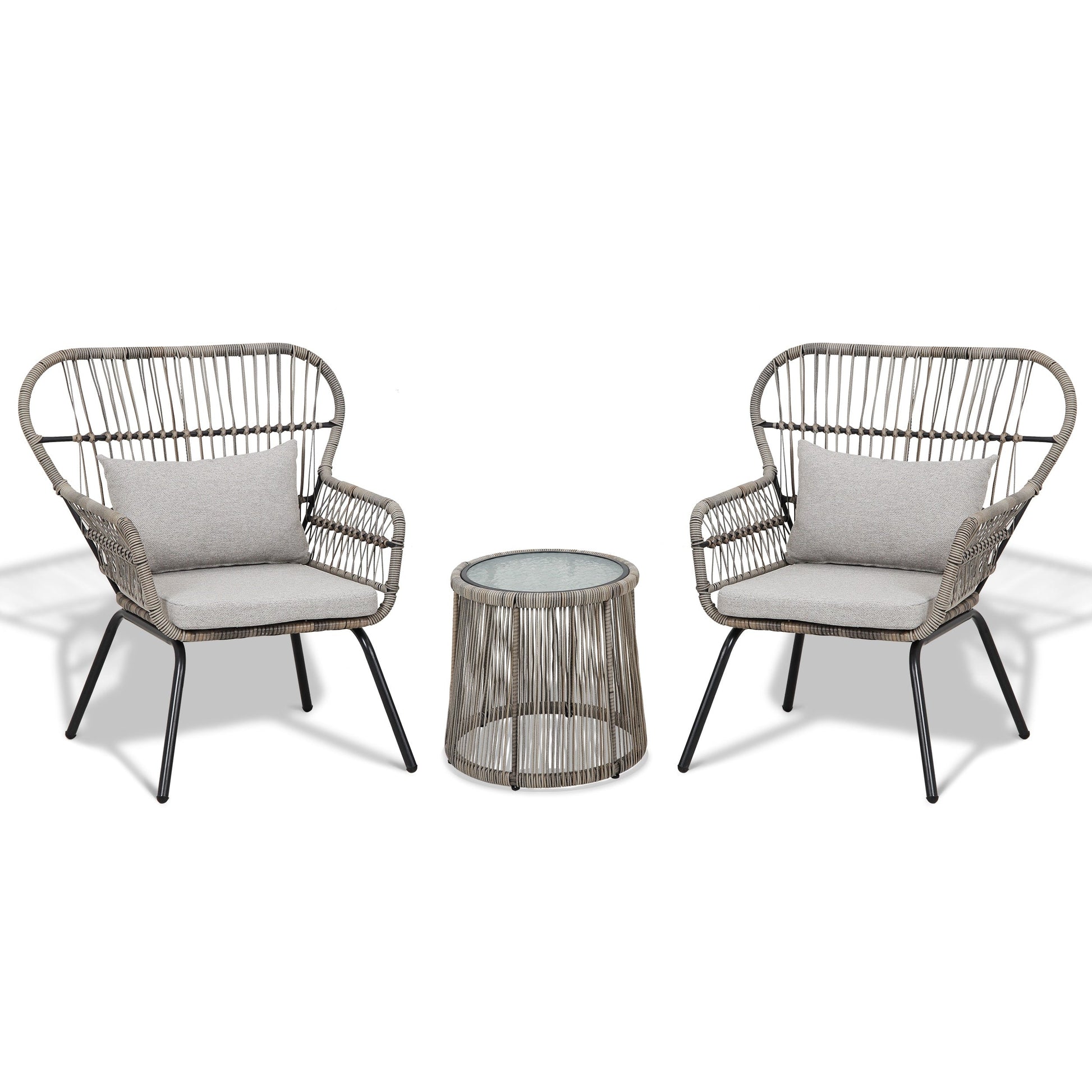 3 Piece Outdoor Wicker Conversation Bistro Set, All-Weather...