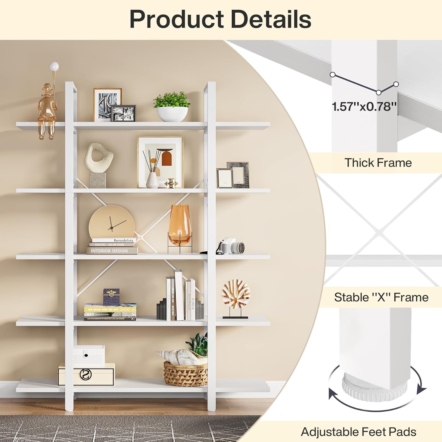 5-Tier Bookshelf, Vintage Industrial Style Bookcase
