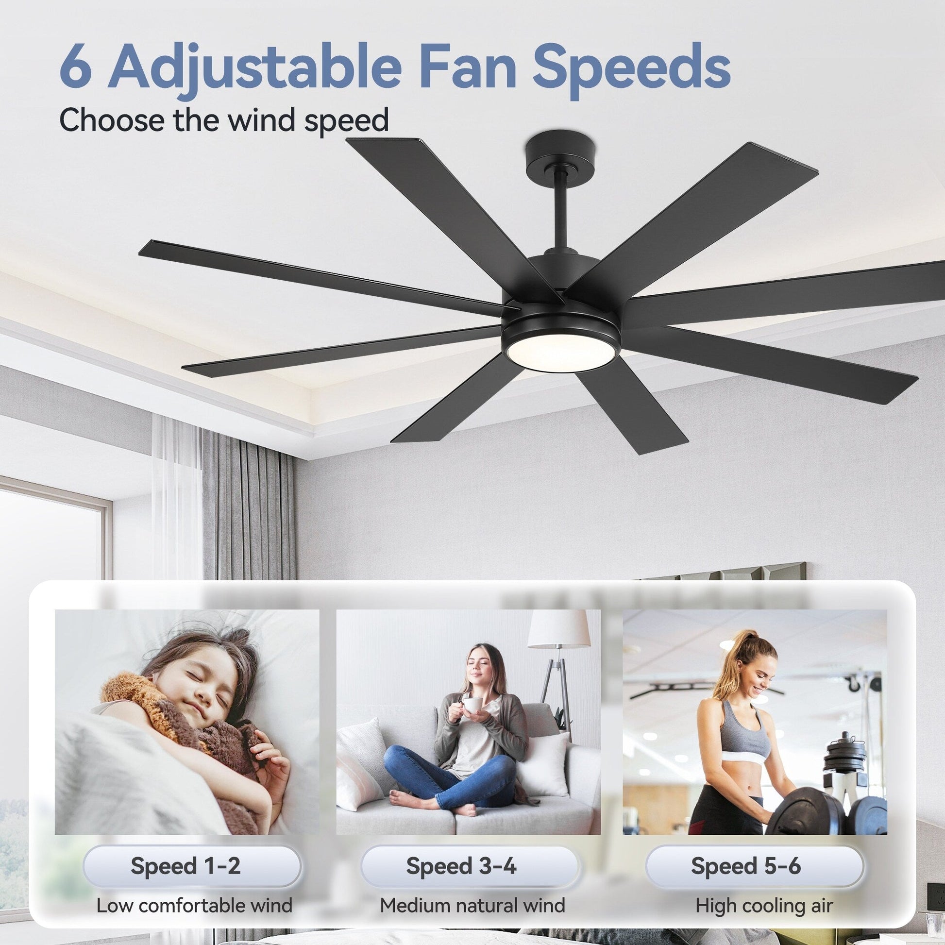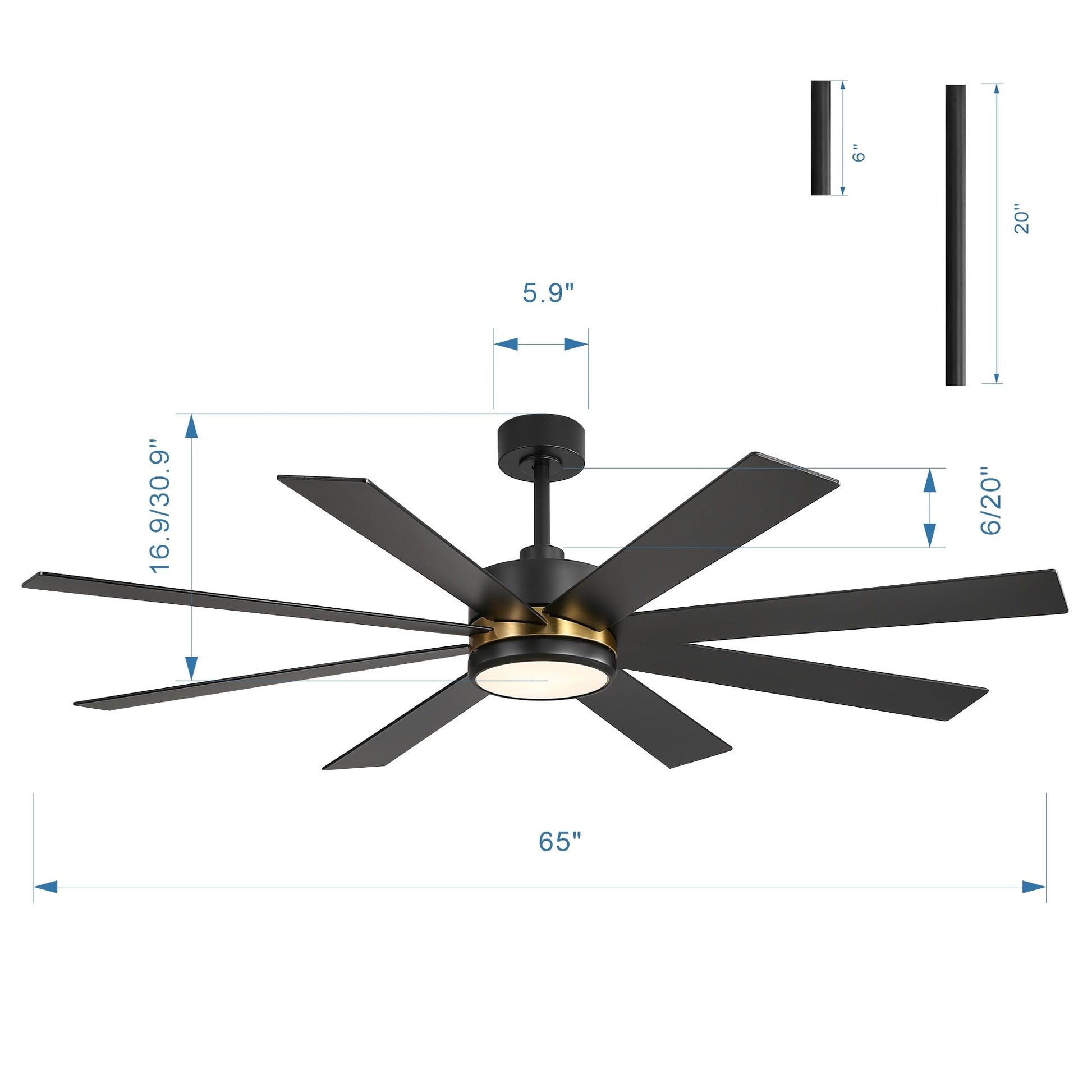 65 Inch 8-Blade Black LED Ceiling Fan with...