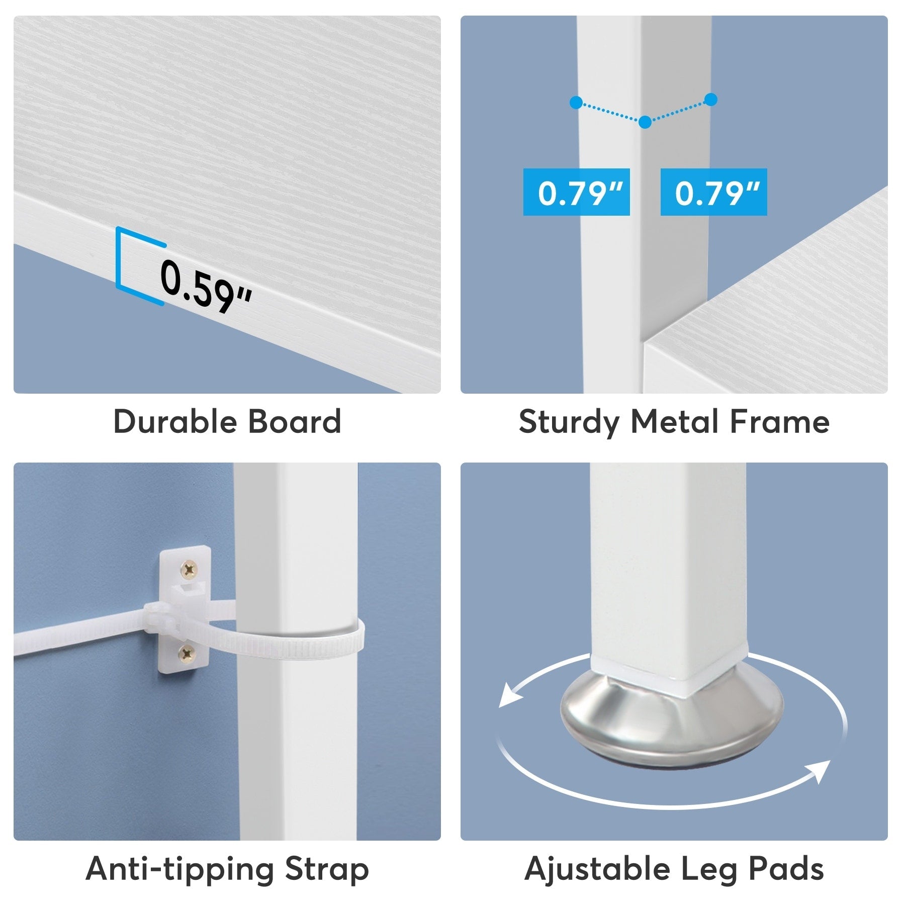 • Stable Structure: Made of high quality environmentally friendly E1 Particleboard and thickened stainless steel tubes frame, our bookcases and bookshelves are super sturdy, stable and durable, and with high load bearing capacity up to 300lb. Staggered steel back support added to strengthen the sturdiness and firmness of the display stand.