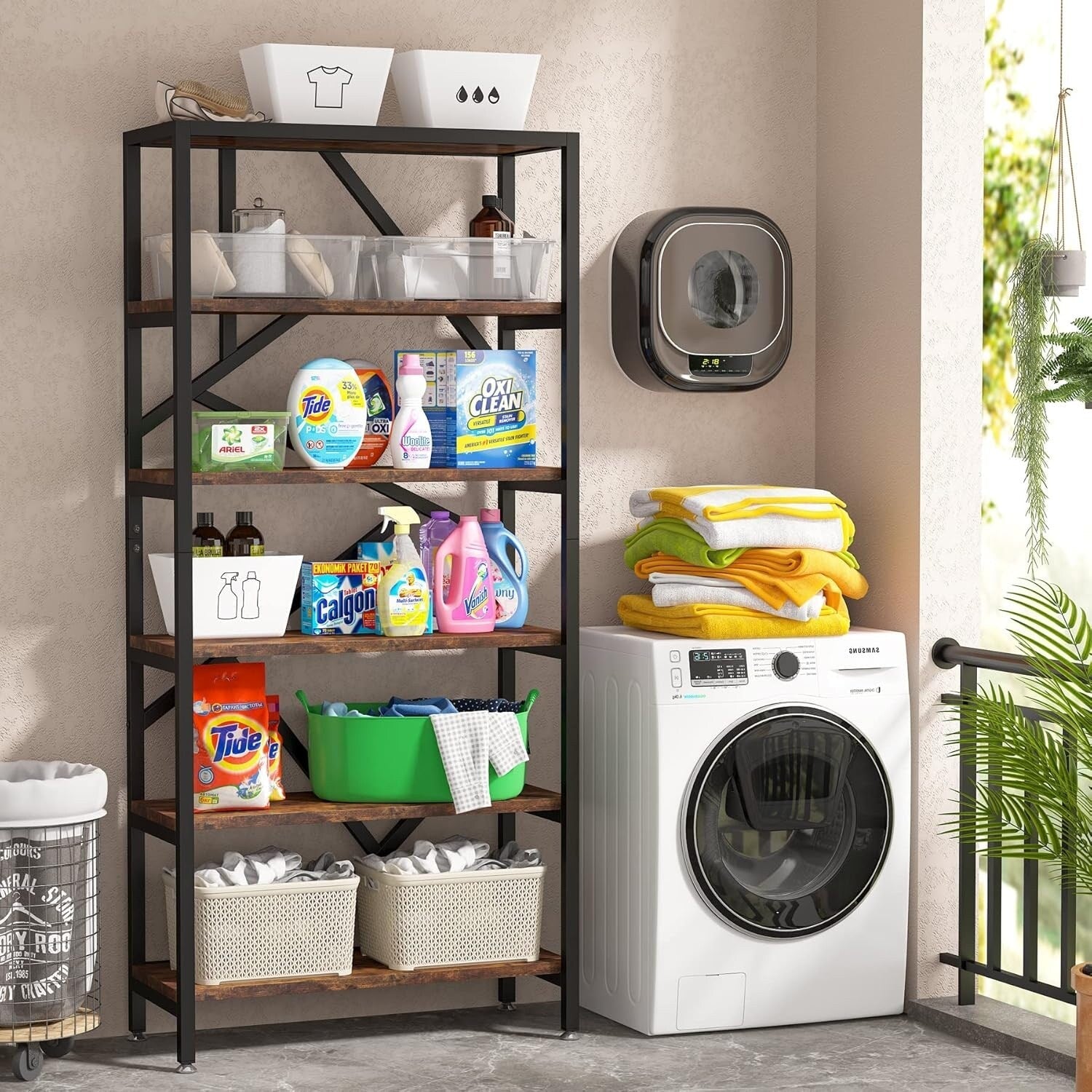 71 Industrial Bookshelf, 6 Tier Rustic...