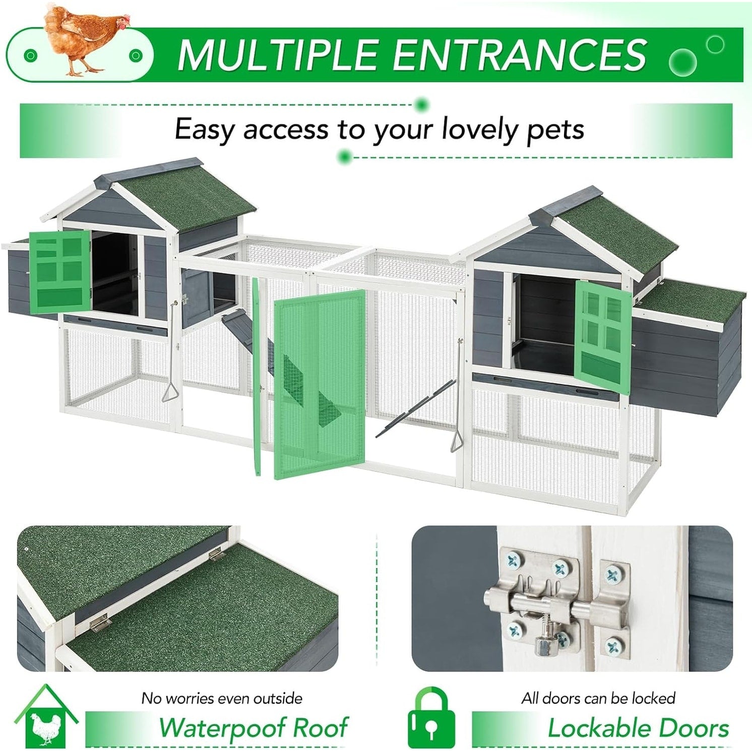 AECOJOY 144'' Large Chicken Coop w/ Run Wooden...