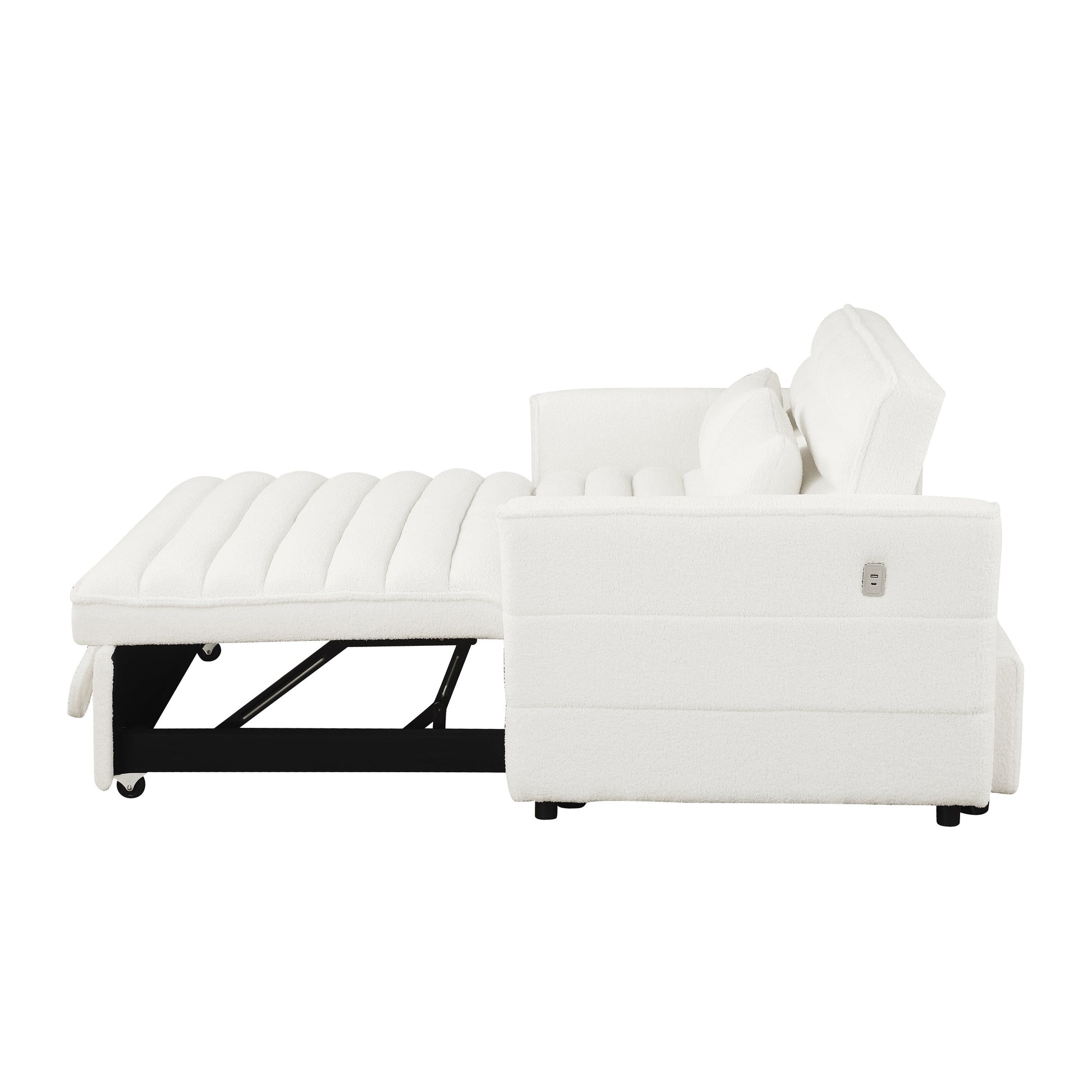 Beige 55.12 Boucle Loveseat Convertible Pull-Out Sofa Bed...