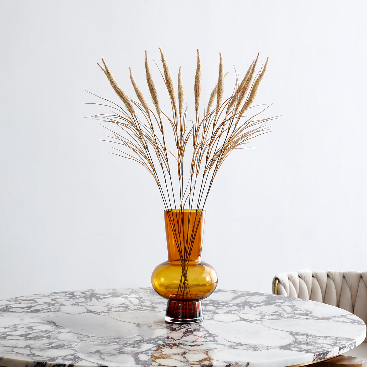 Créez une ambiance chaleureuse et bohème avec ce grand bouquet de pampa de 80 cm composé de 12 tiges aux teintes naturelles, soit jaune foncé, soit beige, soit marron. Idéal pour apporter une touche naturelle à votre décoration, ce bouquet peut être disposé dans un vase sur une table, une console ou une étagère. Ses plumes légères et aériennes offrent un volume généreux et un charme authentique qui s'intègre parfaitement dans un salon, une chambre ou même un espace de travail. Naturellement durable, ce bouquet est parfait pour une décoration sophistiquée, inspirée par la nature et les tendances contemporaines.