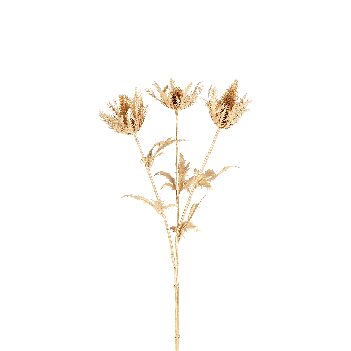 Découvrez cette magnifique tige de chardon dorée qui apportera à votre décoration de Noël une touche raffinée et élégante. Existe en deux versions : une avec 4 chardons et une avec 3 chardons.