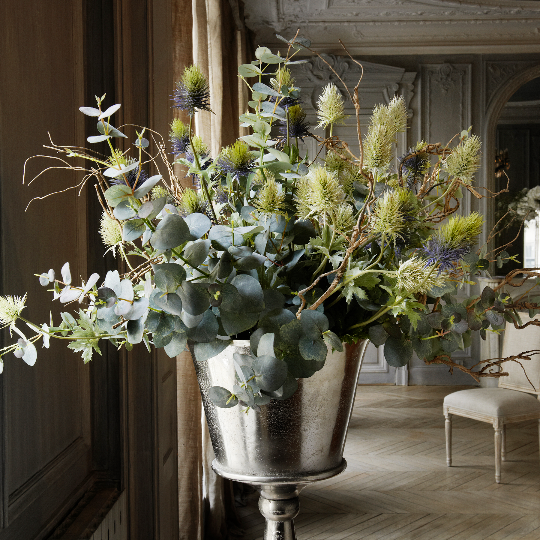 Tige artificielle de chardon en fleurs. Idéale pour votre décoration automne-hiver ou vos décorations de fêtes de fin d'année. Nous vous conseillons d'assembler 7 tiges pour un bouquet de beau volume. Existe en deux coloris : bordeaux et bleu.