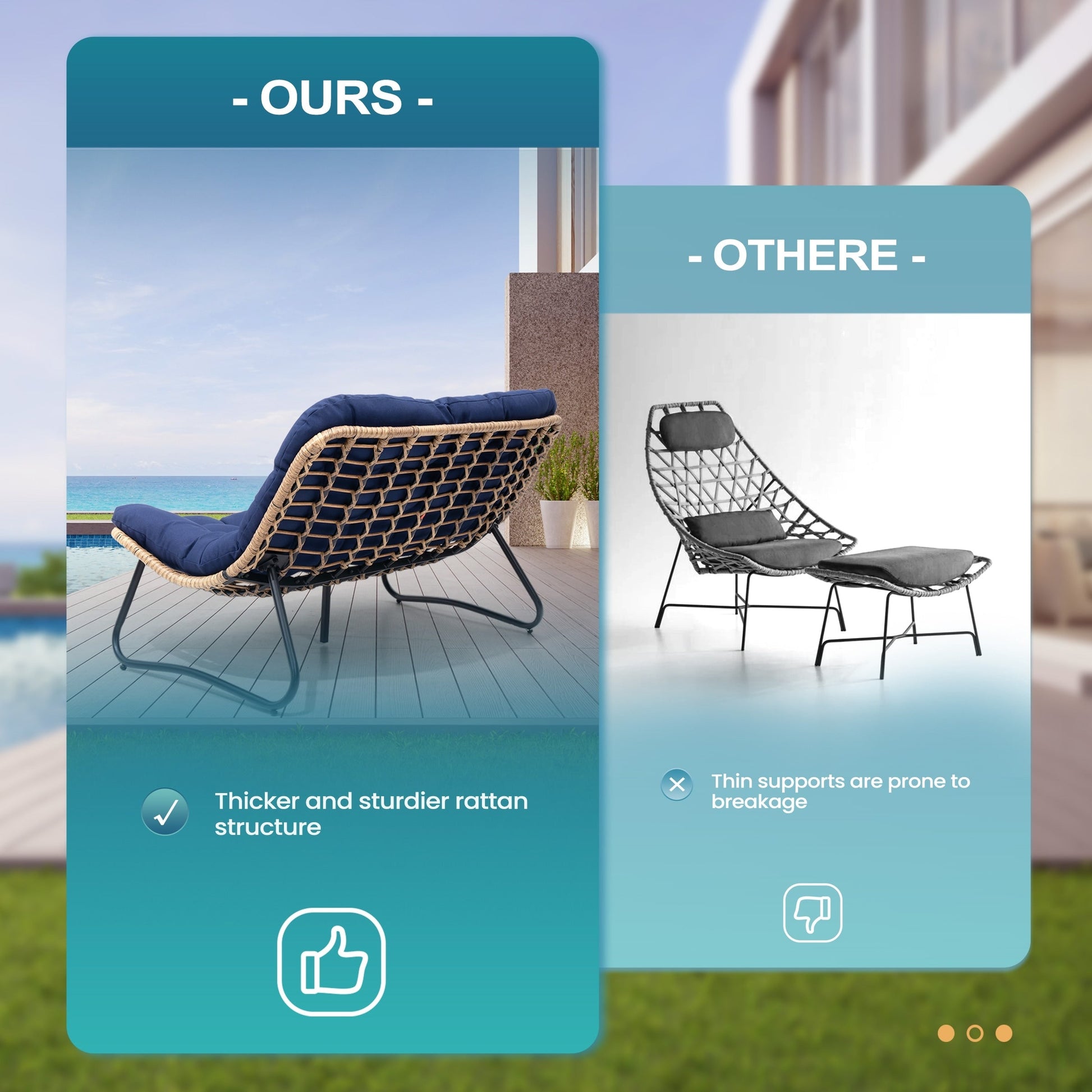Double Papasan Chair Loveseat with Cushion, All-weather PE...