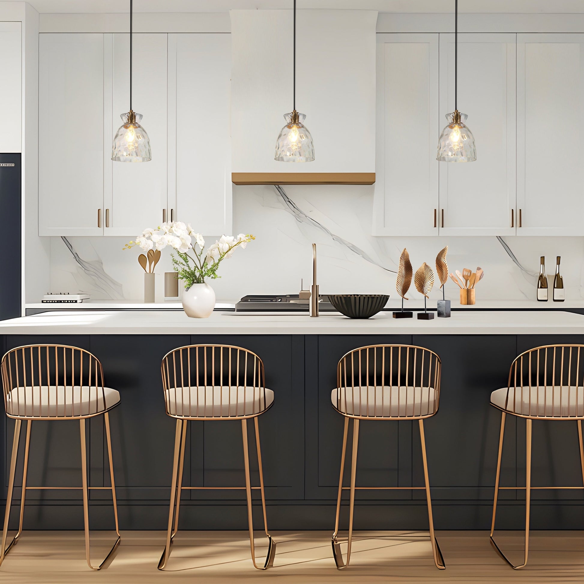 Elisie Mid-century Modern Pendant Light 1-Light Waterfall Glass Hammered Dome Kitchen Island Lighting Dining Room