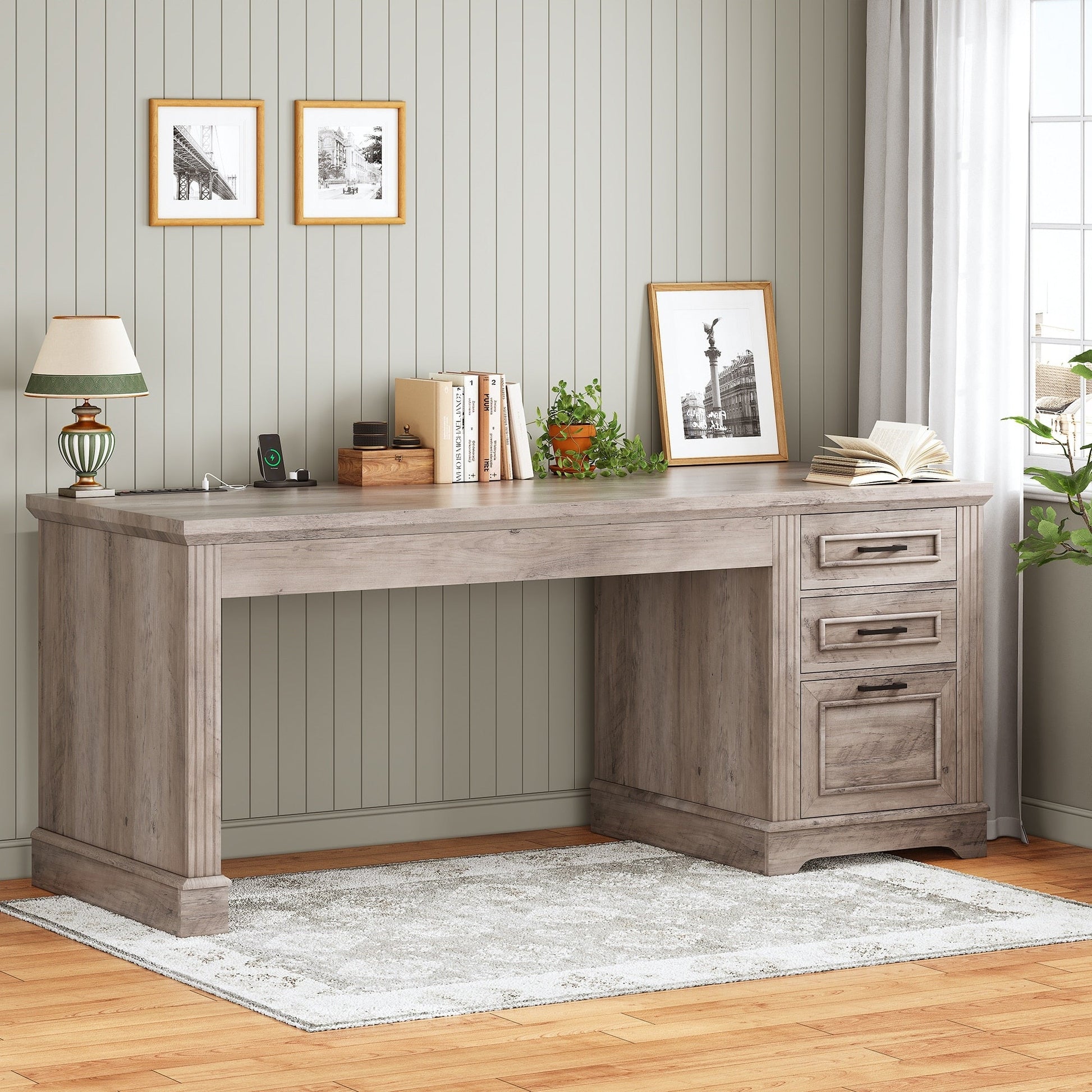 Farmhouse Executive Desk Home Office Desk File Drawer...