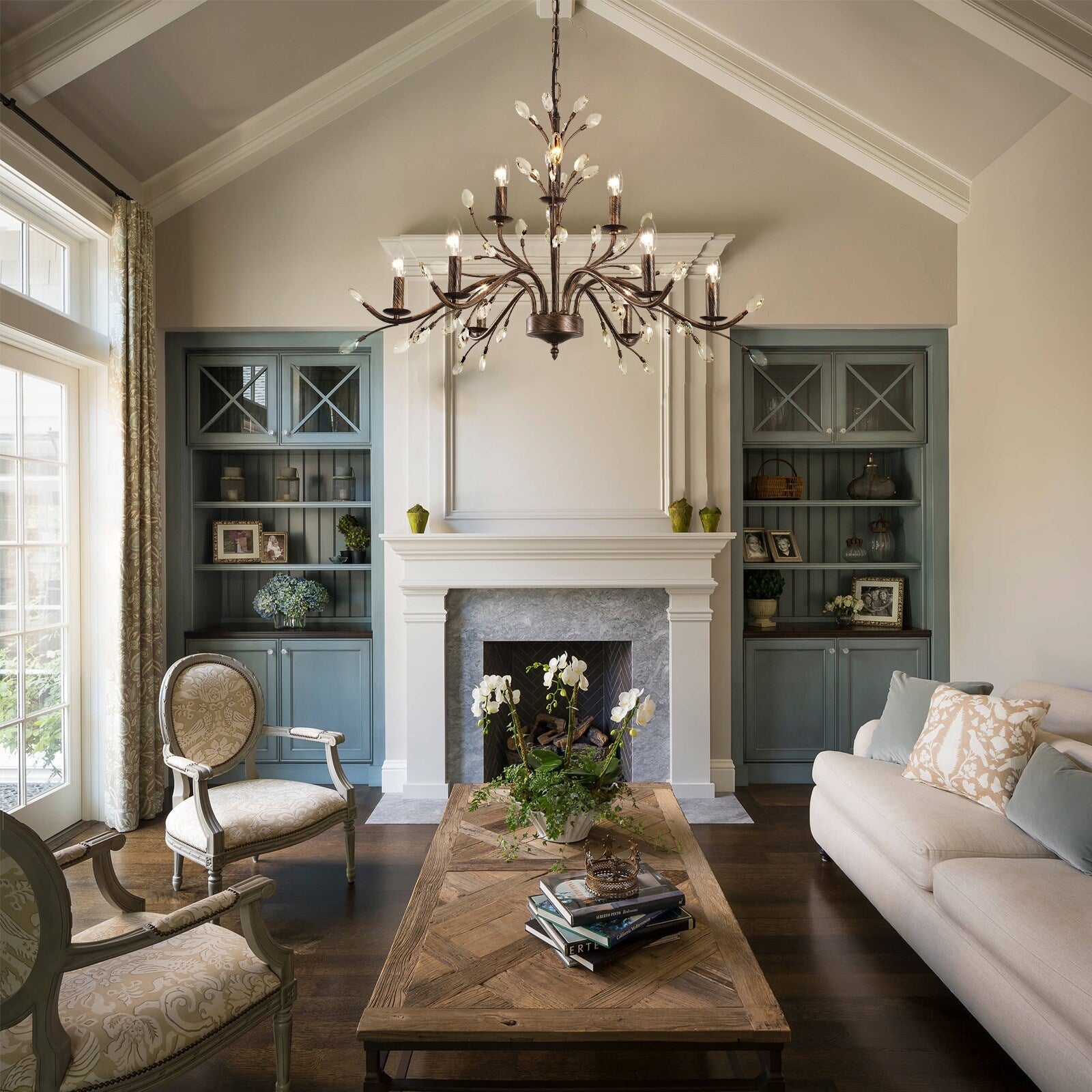 Farmhouse Retro Tree Branch Crystal Chandelier Candle-Style Pendant...