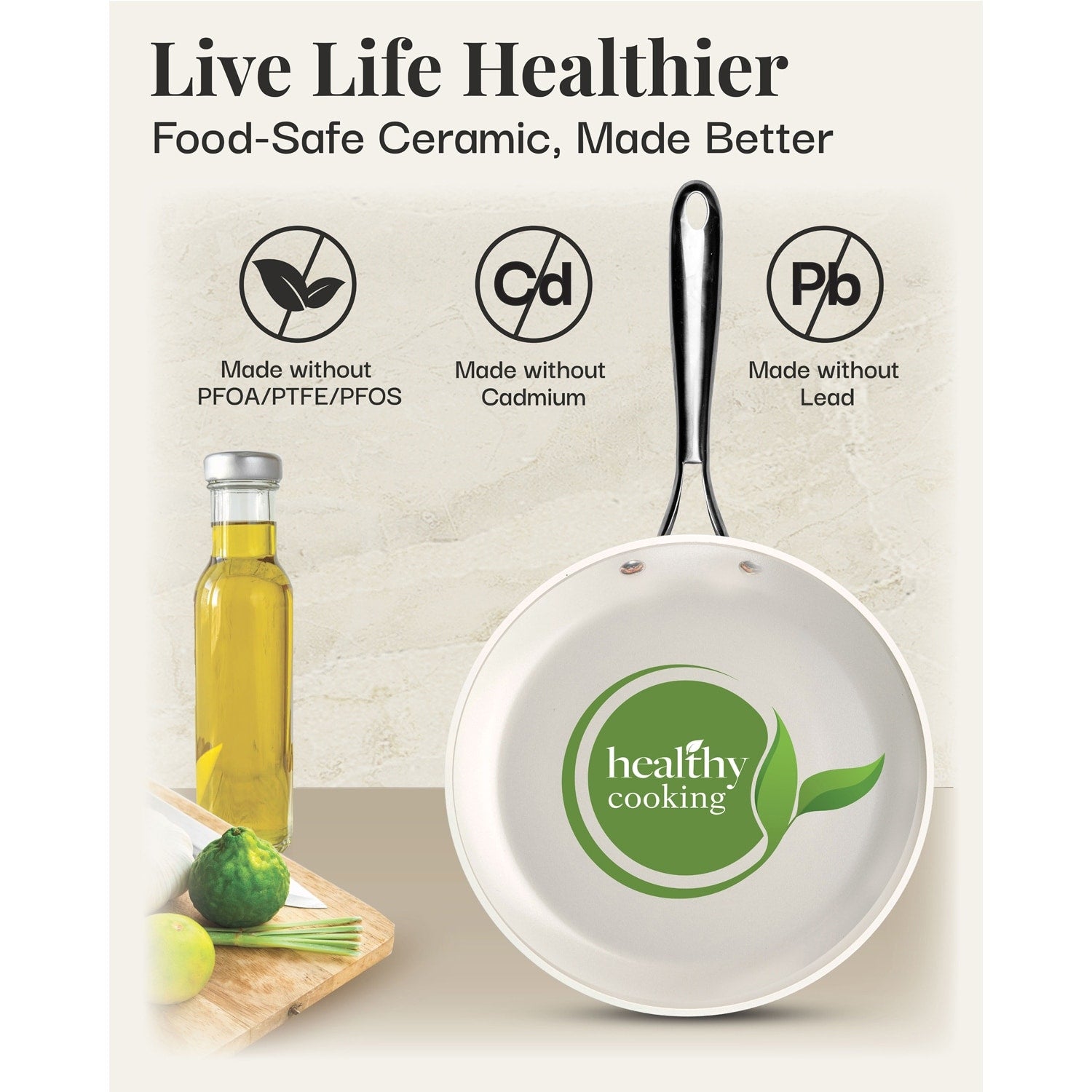 Upgrade your kitchen with the Gotham Steel 12-Piece Nonstick Ceramic Cookware Set in elegant Cream. Featuring a triple-coated ceramic-titanium surface with diamond reinforcement, it ensures effortless food release, durability, and scratch resistance. Toxin-free and dishwasher safe, this set offers even heat distribution for all stovetops and is oven safe up to 500°F. Includes frying pans, skillets, saucepans, and a stockpot. Stylish and efficient, perfect for health-conscious cooking.