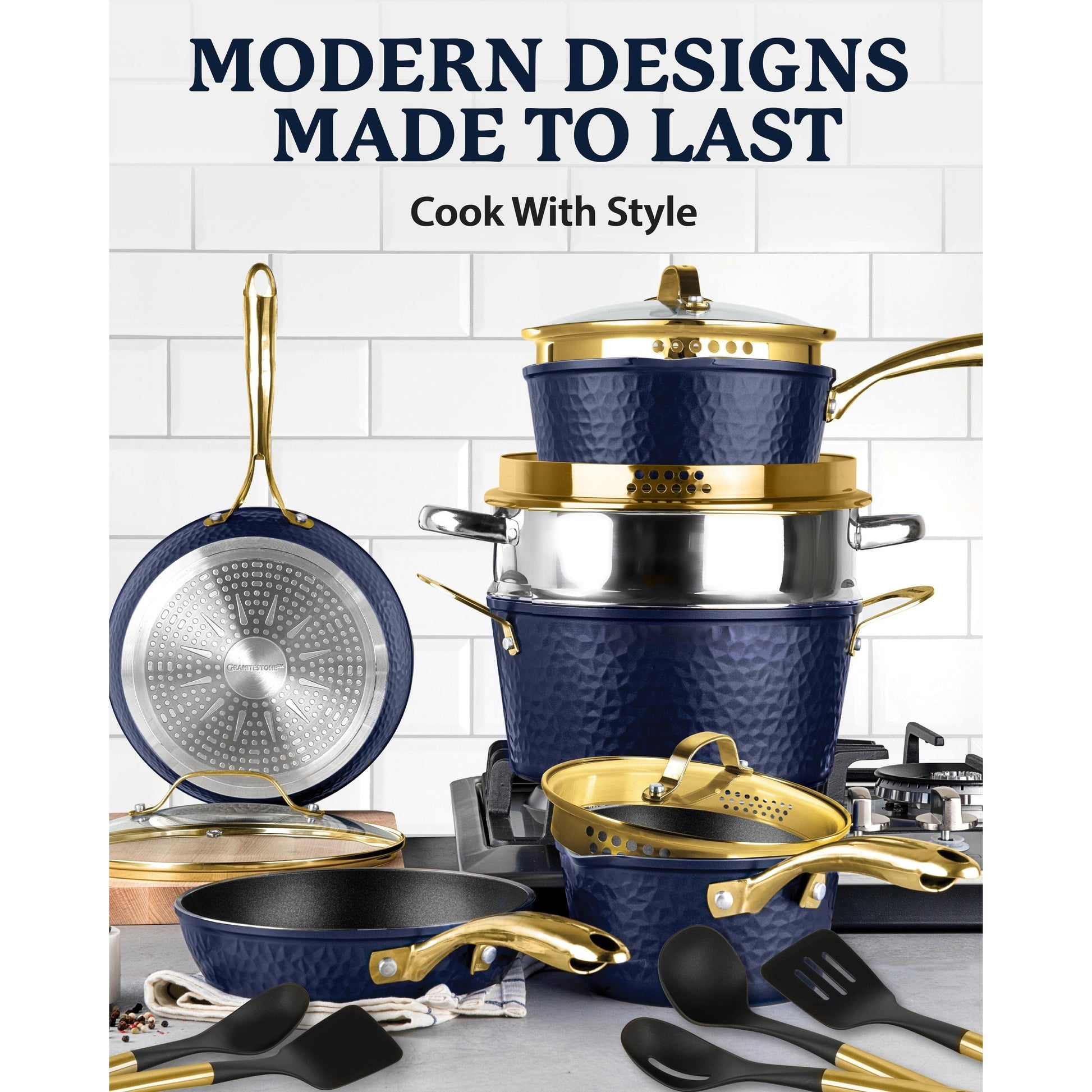 Granitestone Charleston Hammered 15 Piece Nonstick Cookware Set