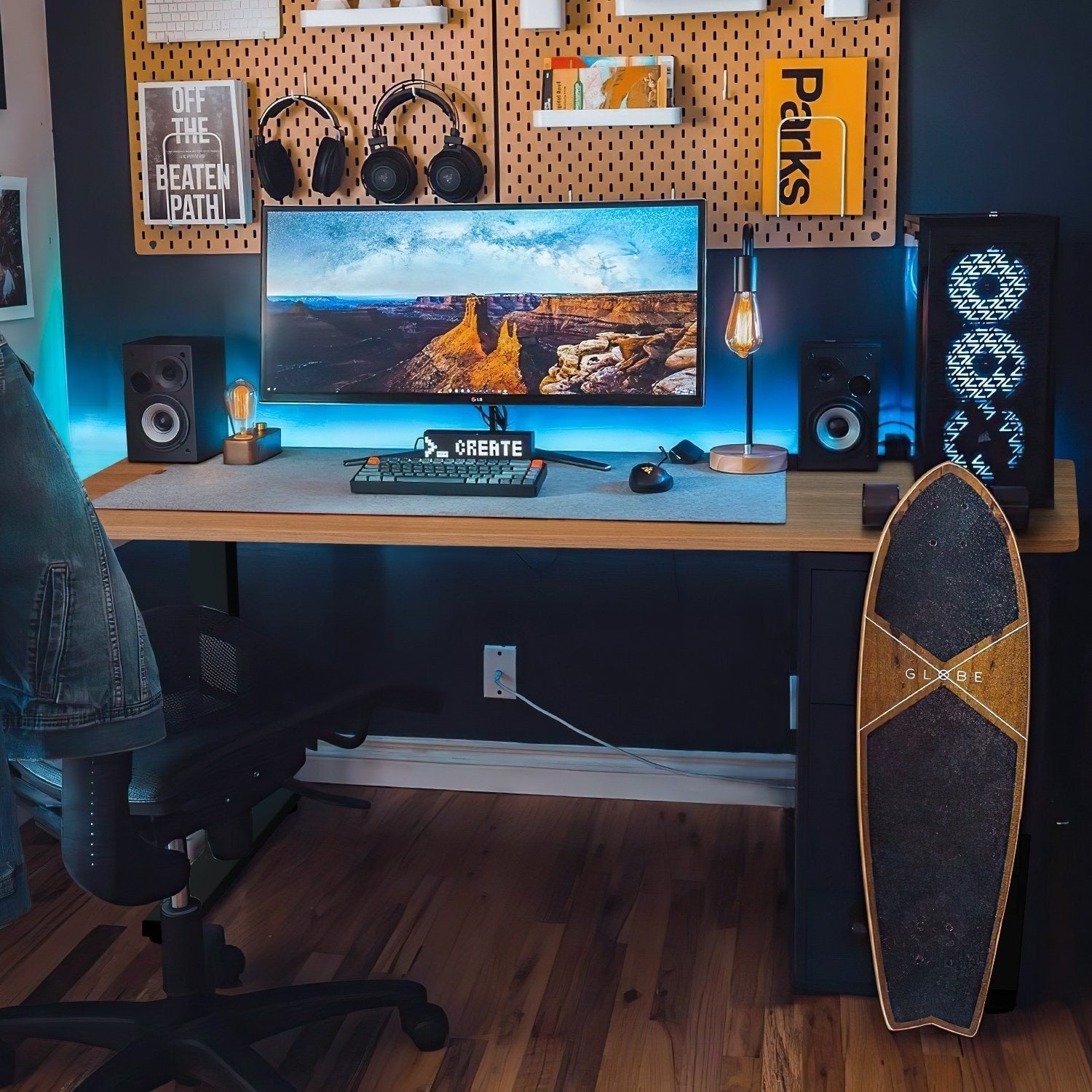 • Industrial-grade steel frame and solid desktop supports up to 176 lbs