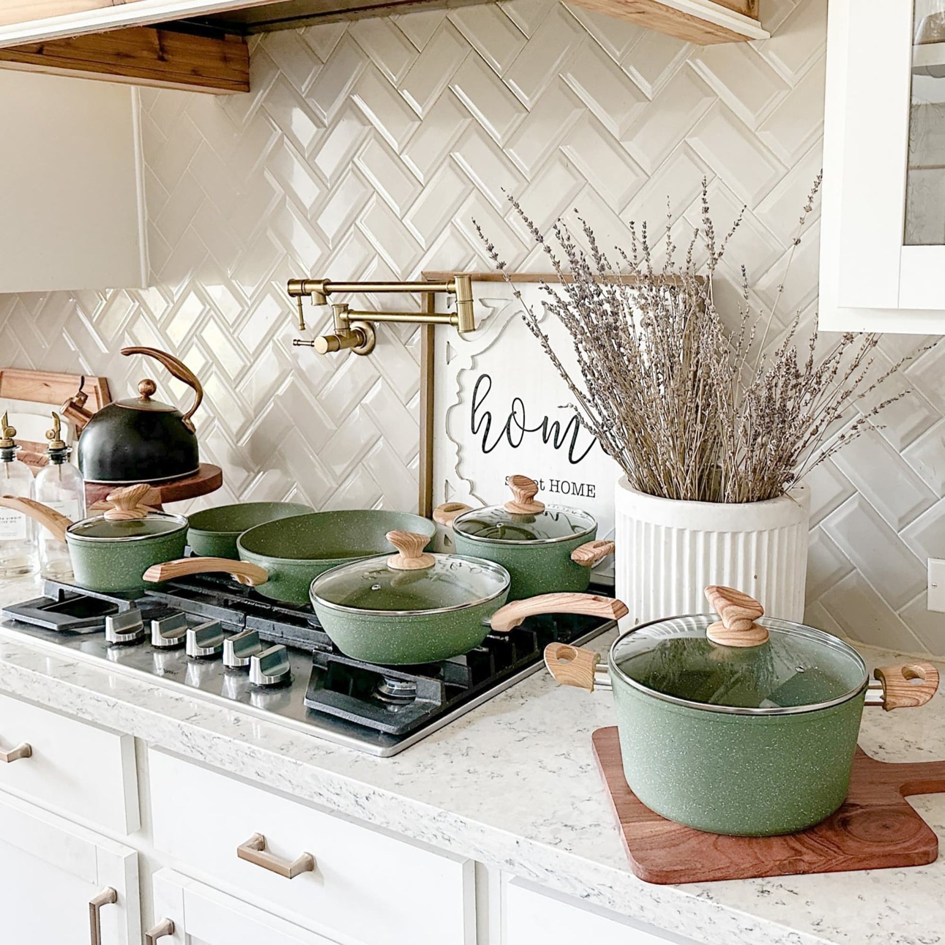 Kitchen Cookware Sets Nonstick, 12 Piece Pots and Pans Set Granite Cooking Set