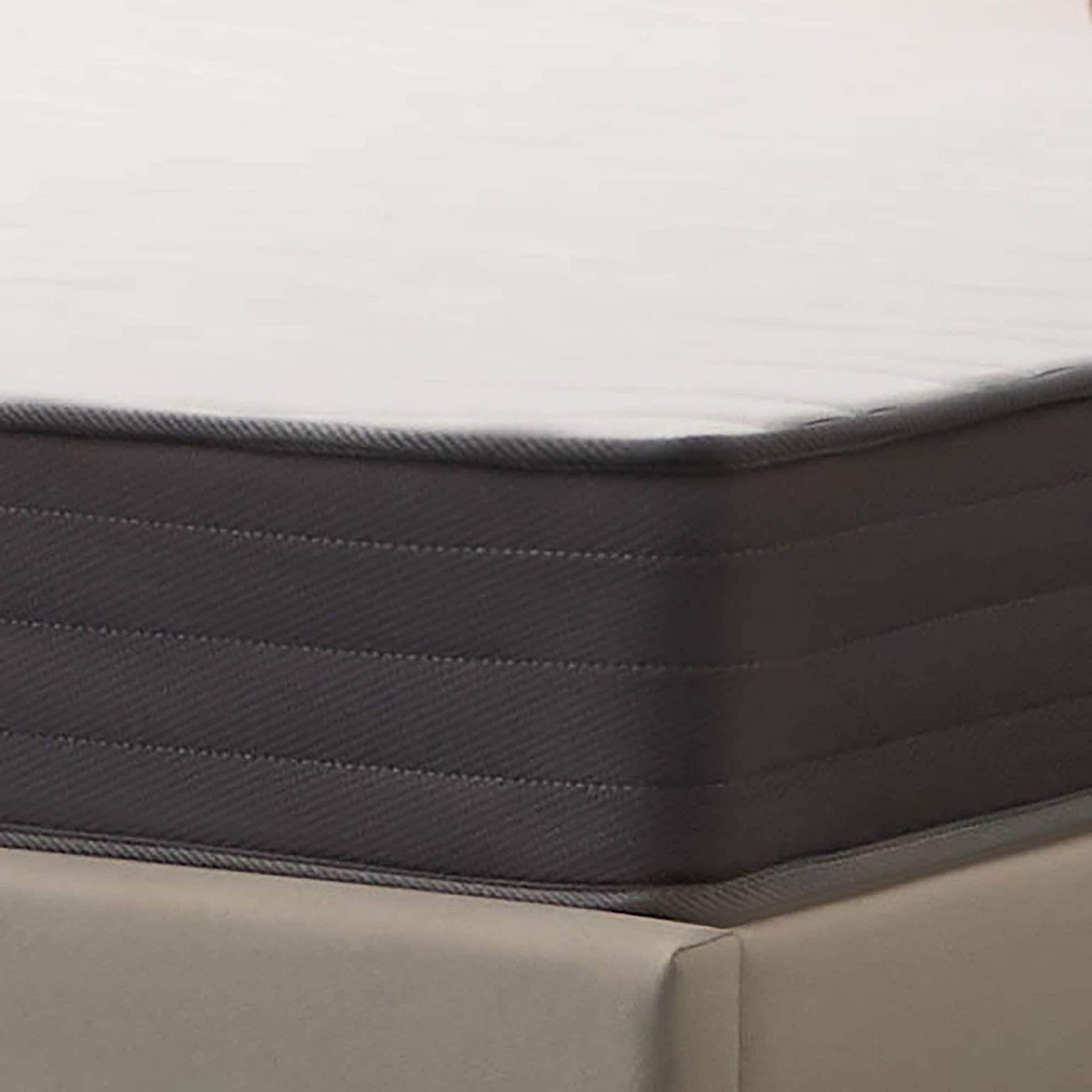 - MATTRESS UPDATE: We are in the process of updating the look of our mattresses so you may receive a white mattress with blue piping or a white mattress with gray piping; either way you will experience the same soft and supportive memory foam hybrid comfort