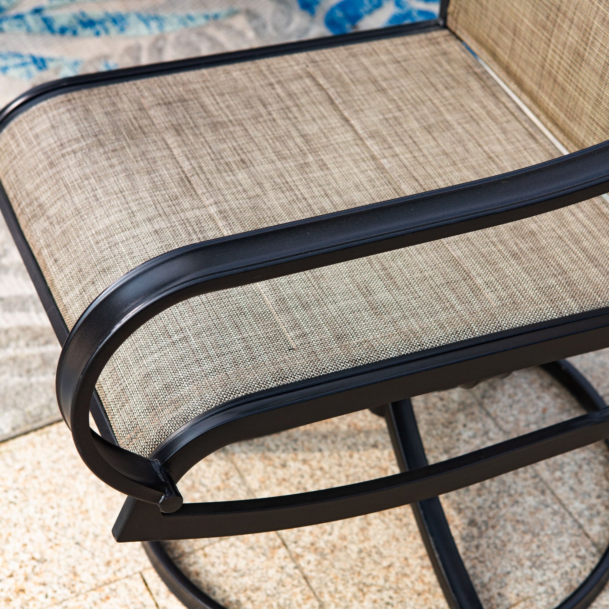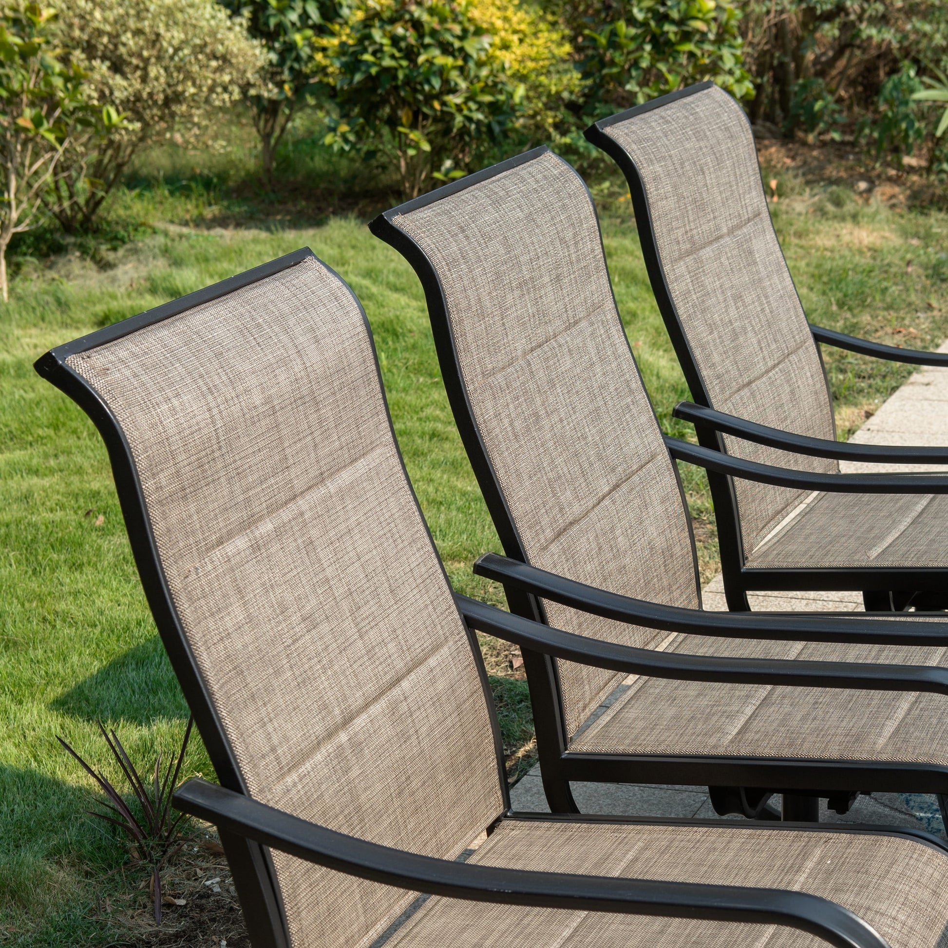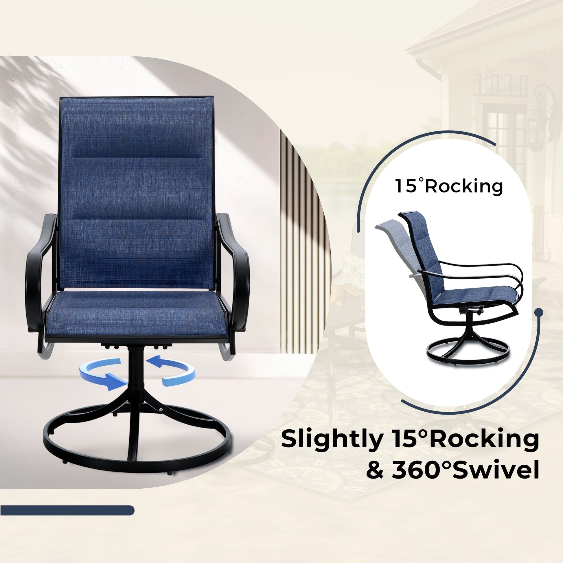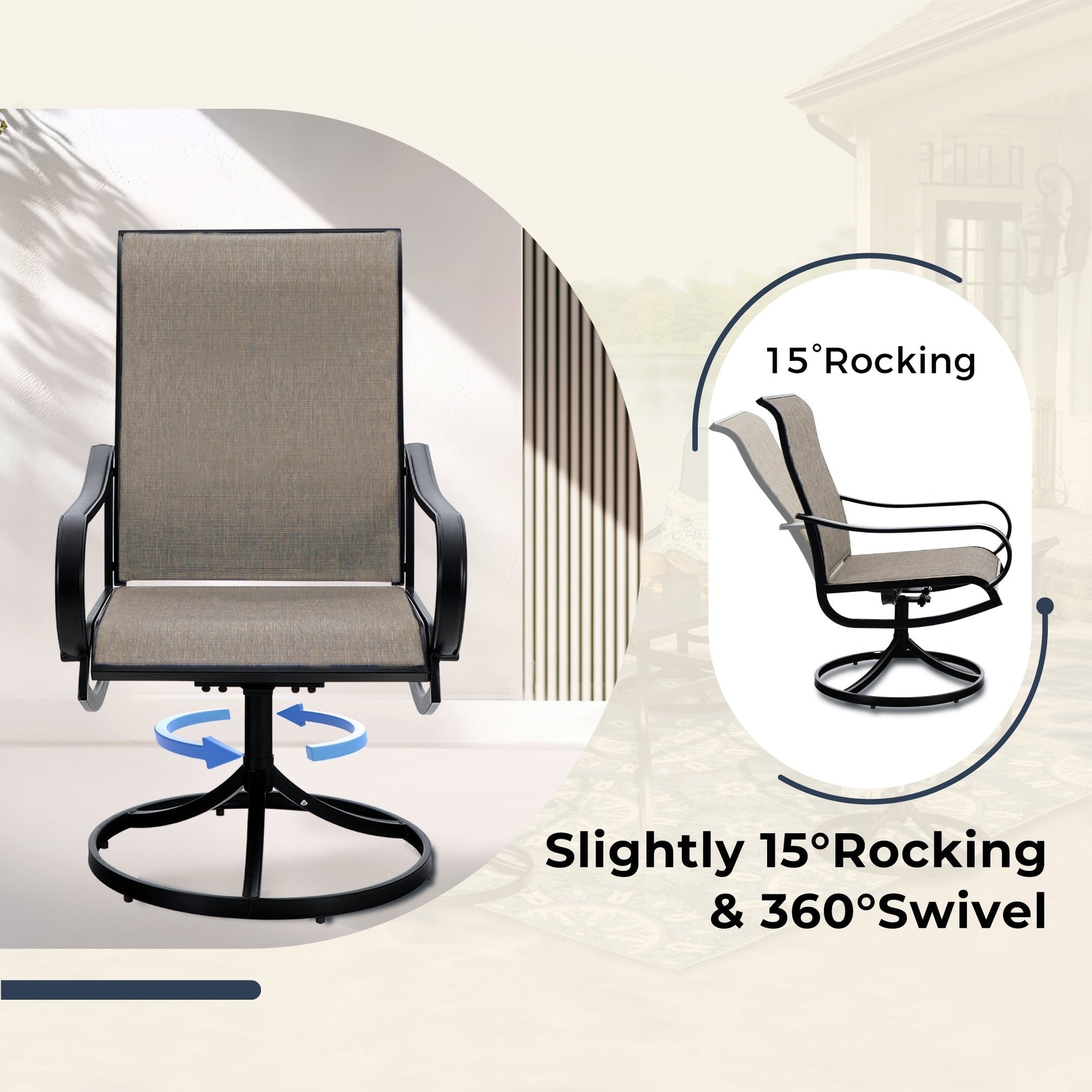 • 6 swivel armchairs with Textilene mesh fabric and a slightly rocking, ergonomic design for added comfort