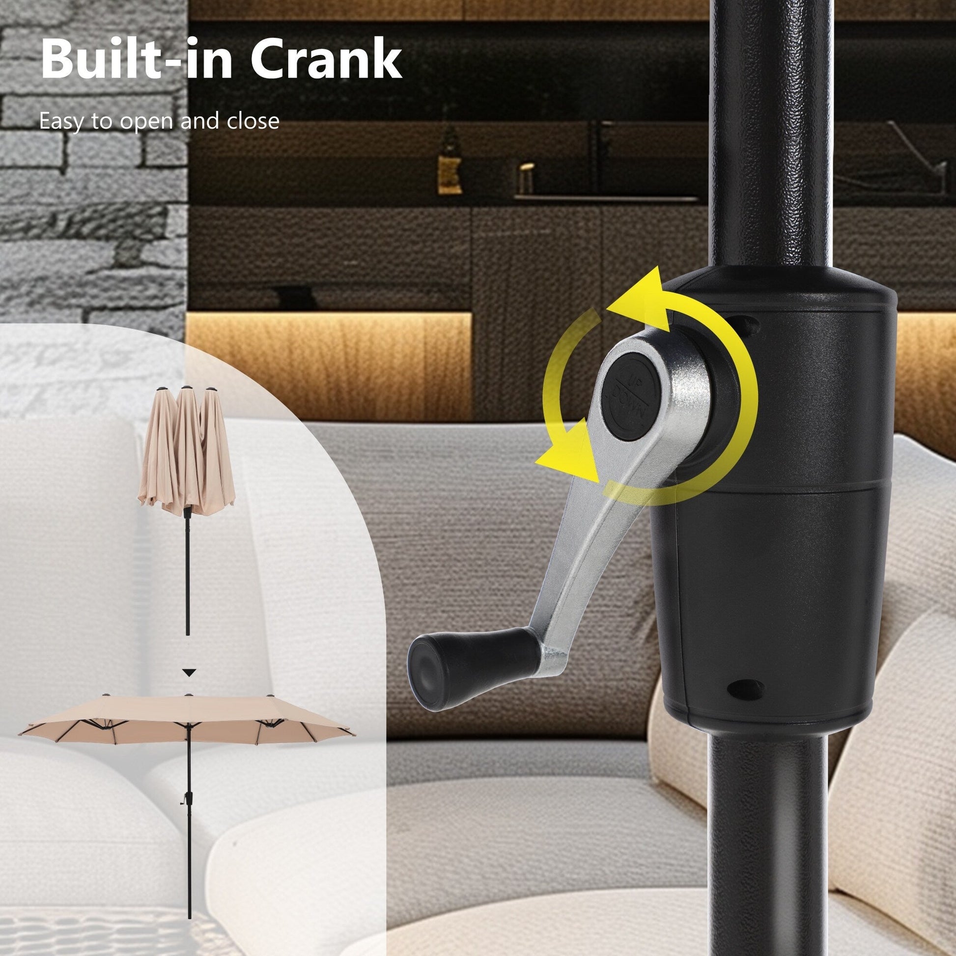 • 13ft double-sided umbrella with 180g polyester fabric canopy and 1.5' aluminum pole