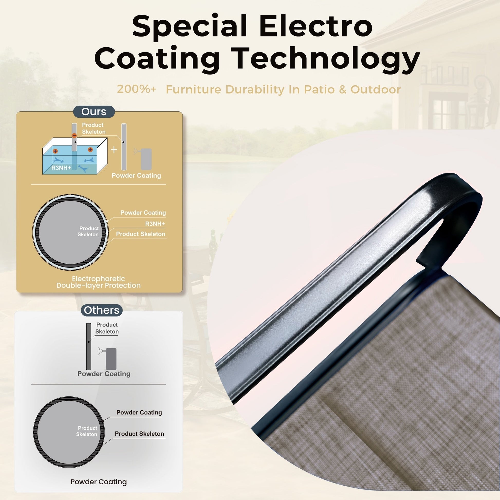 Color: Taupe Non-Padded Chair w/ Beige Umbrella