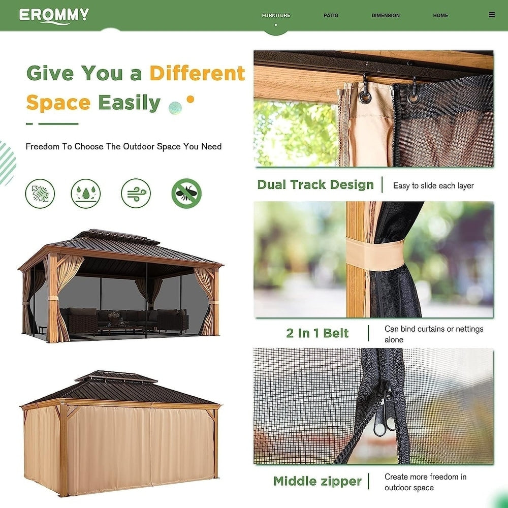 Outdoor Hardtop Gazebo with Galvanized Steel Double Roof & Aluminum Frame, Outdoor pergola with Premium Curtains and Nettings