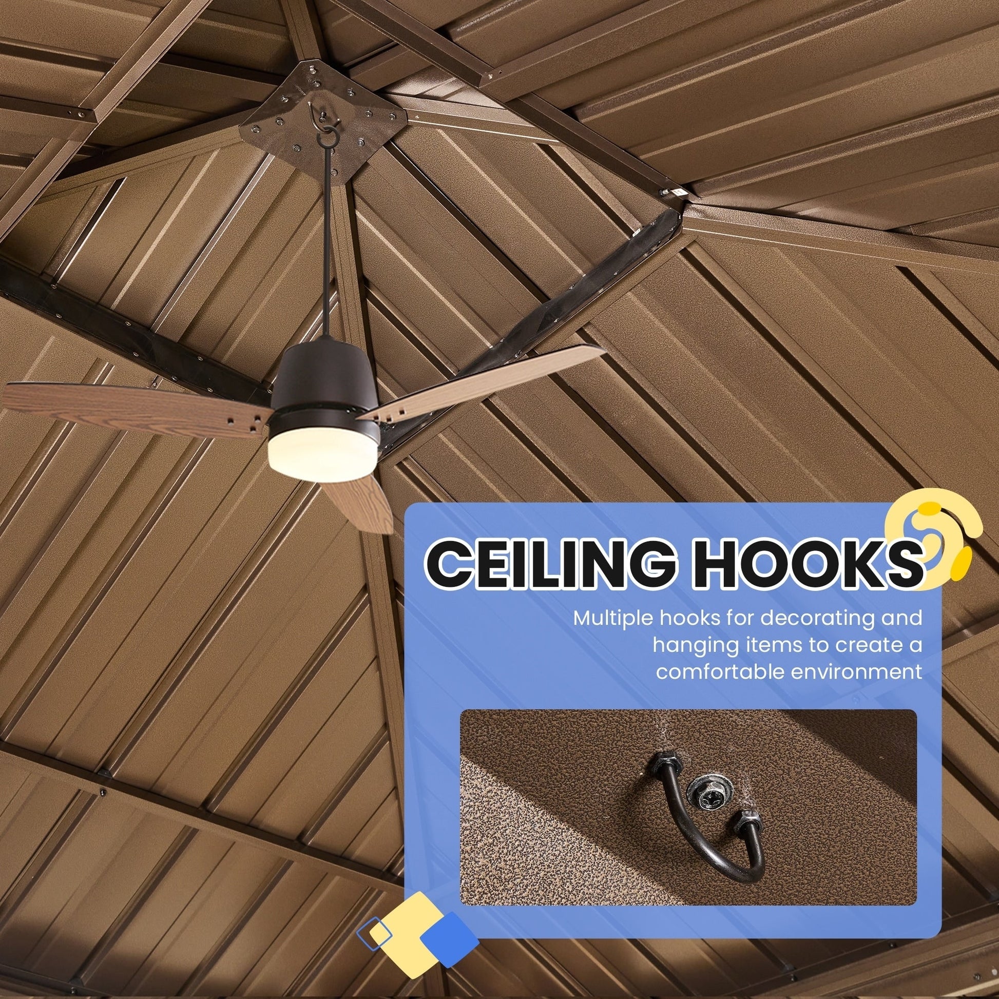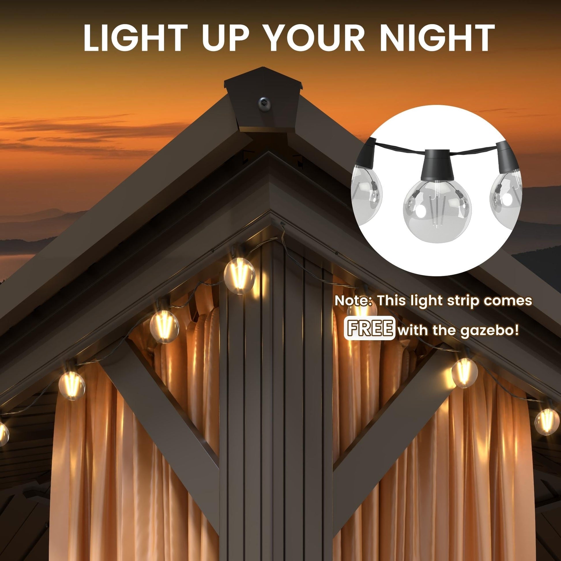 Multi-purpose hook design aims to meet your many needs. It allows you to hang fans on hot summer days, or add beautiful lights and decorations. This gazebo can be a playground for children, a place for couples to date, or a great space for families to gather. It will certainly bring you unexpected surprises.