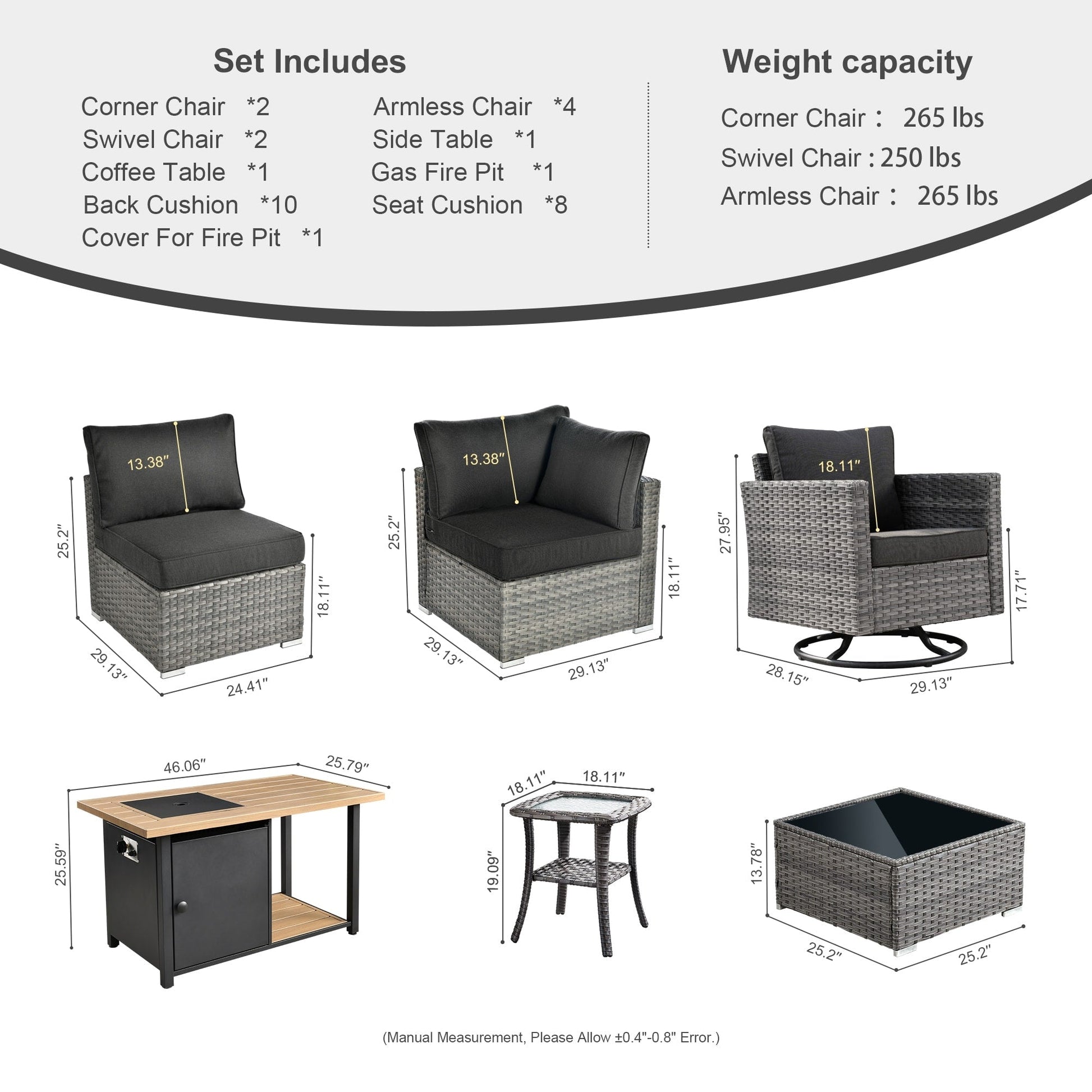 OVIOS Deep Seat Wicker 11-piece Sectional Set Swivel...