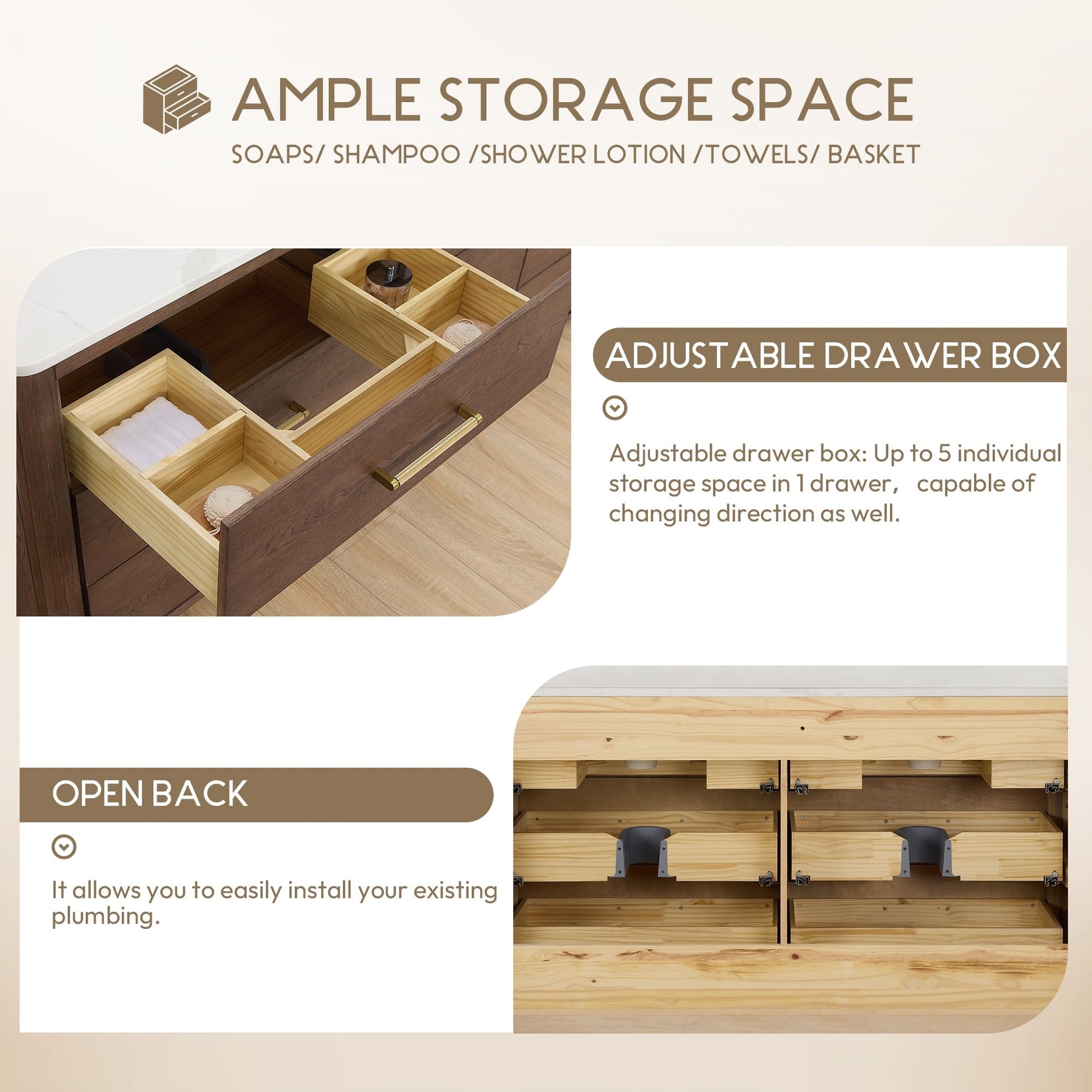 72 Inch - Six sturdy, soft-closing dovetail drawers feature built-in partitions for easy access to all your toiletries.