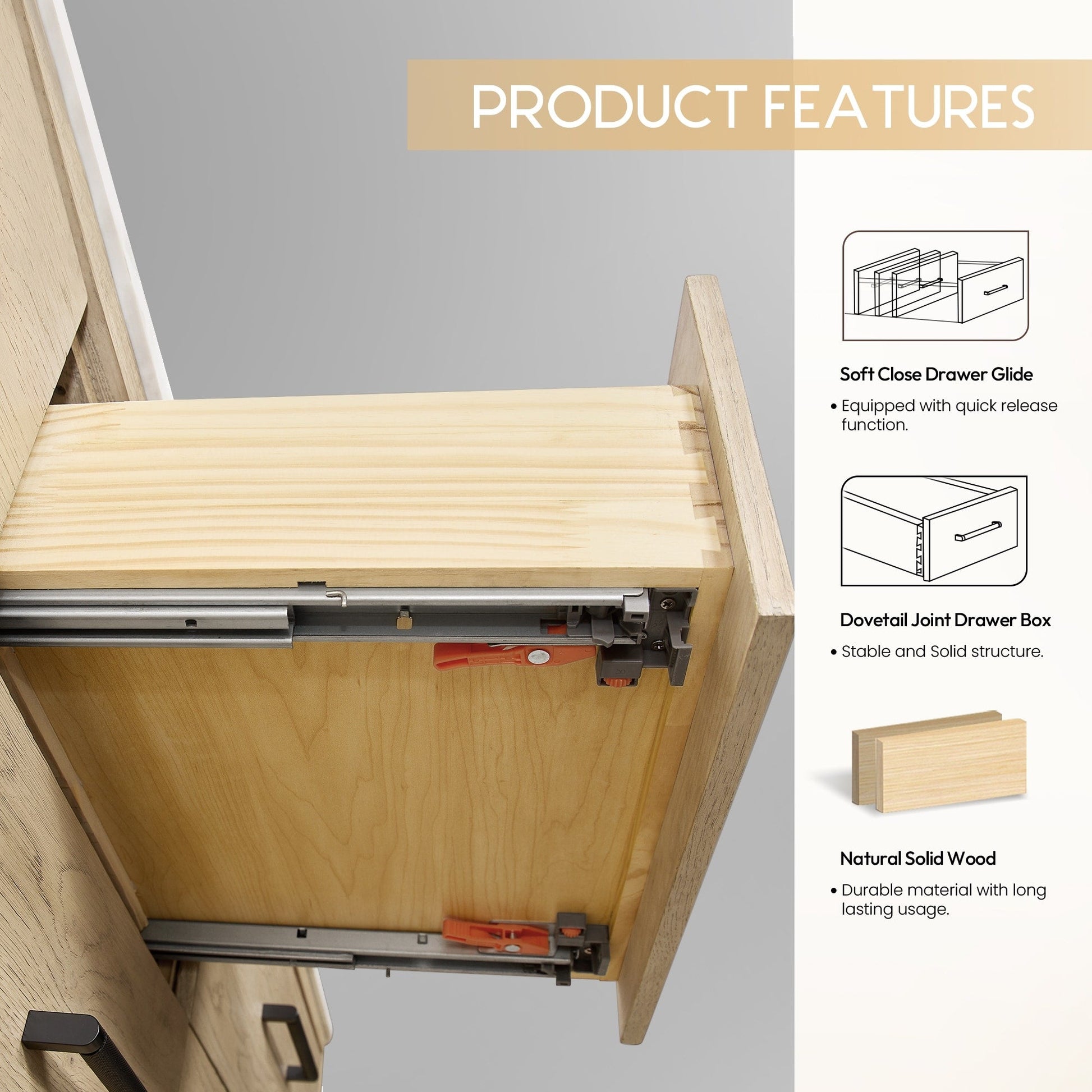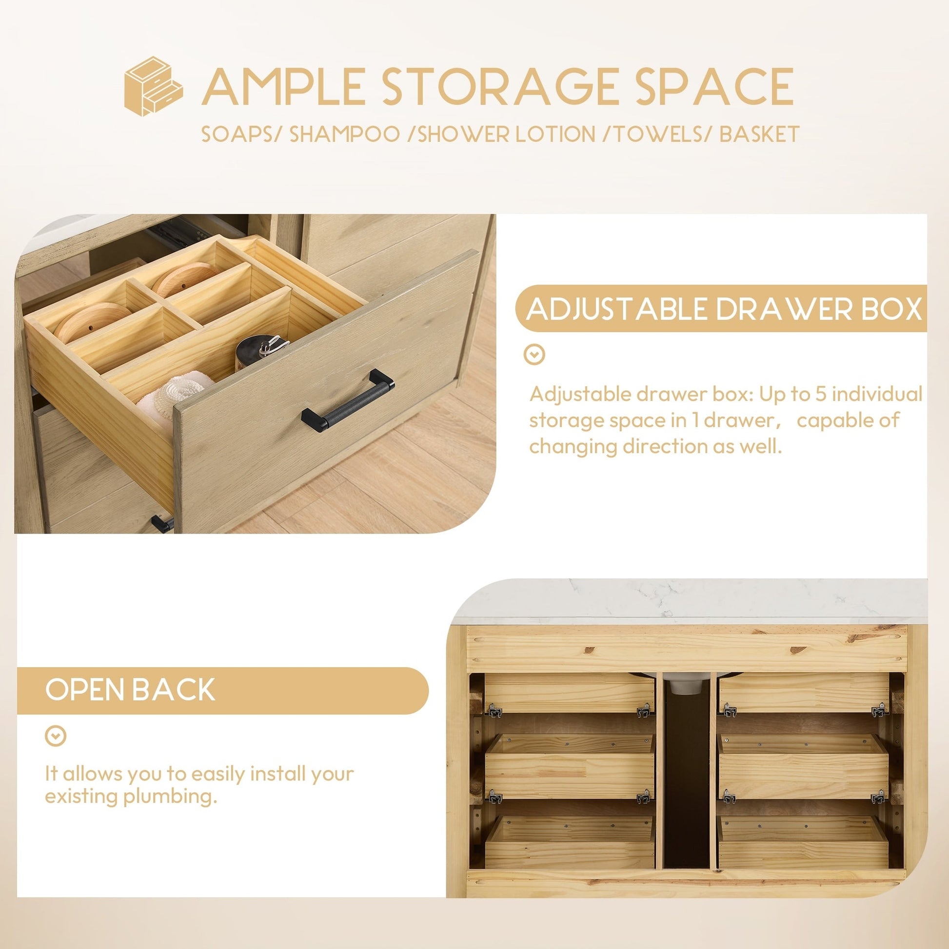 48 Inch - Six sturdy, soft-closing dovetail drawers feature built-in partitions for easy access to all your toiletries.