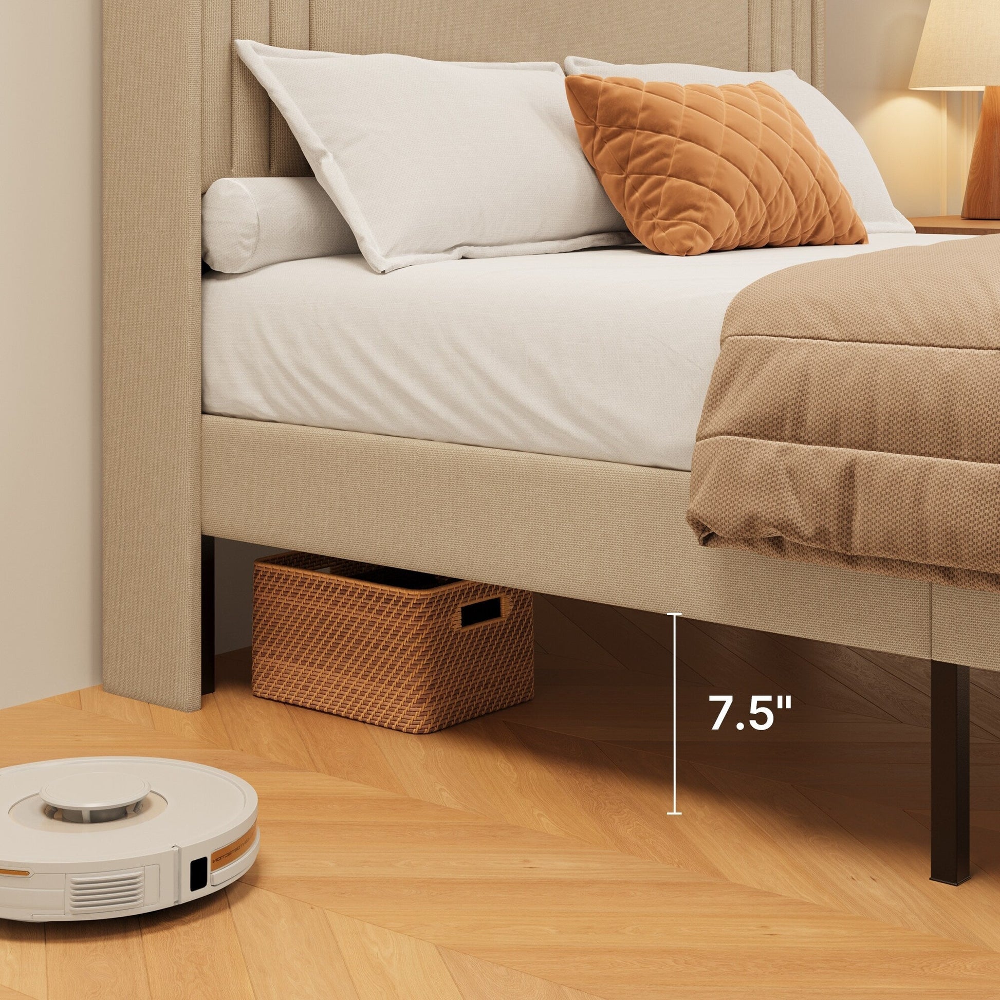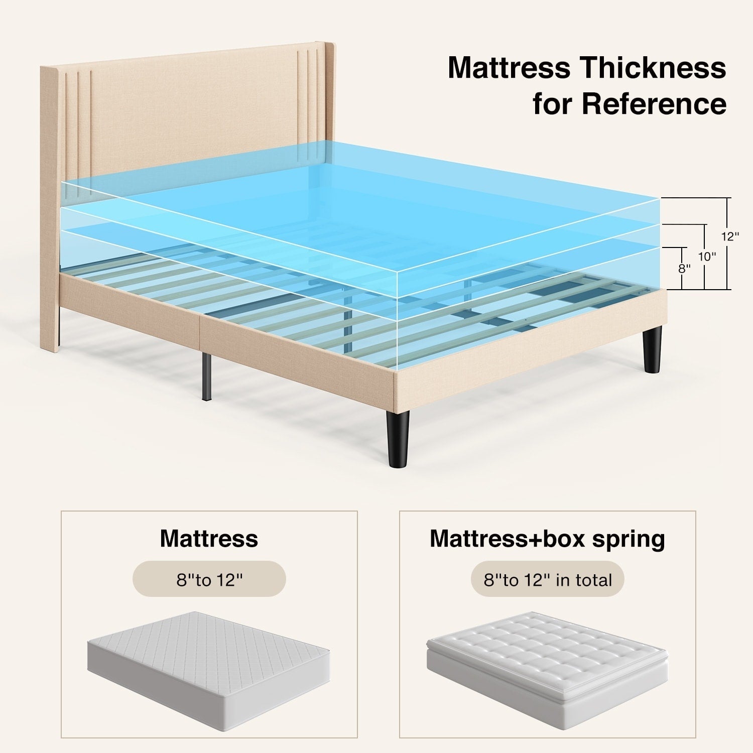 Queen/ Full Vertical Channels Upholstered Bed with Wingback Headboard