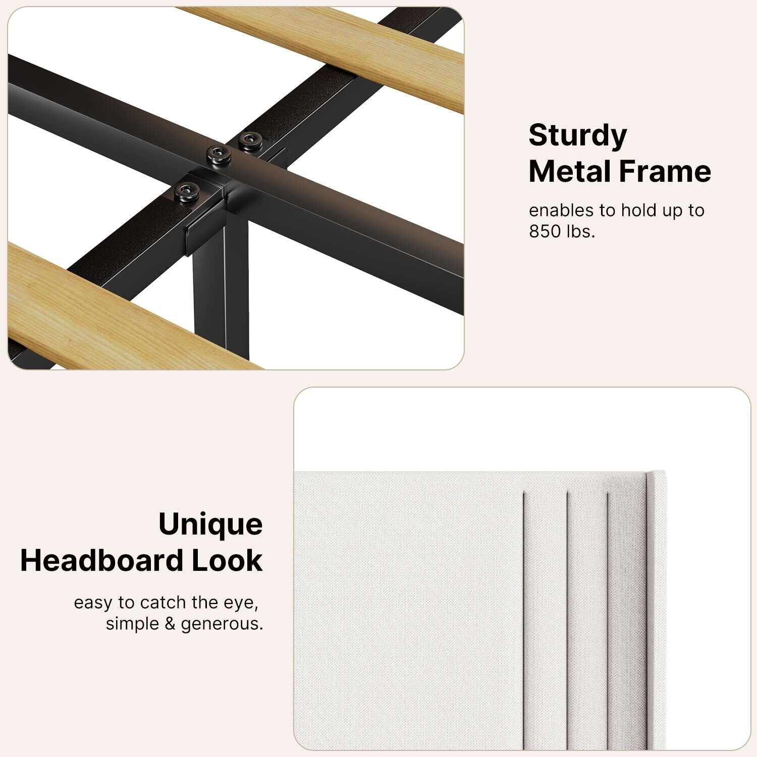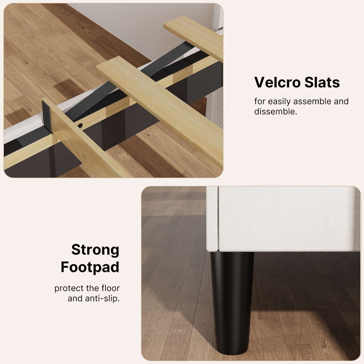 • Durable Construction: Built with a solid frame, this upholstered bed offers reliable support for your mattress without the need for a box spring. Its sturdy construction ensures long-lasting durability and comfort.