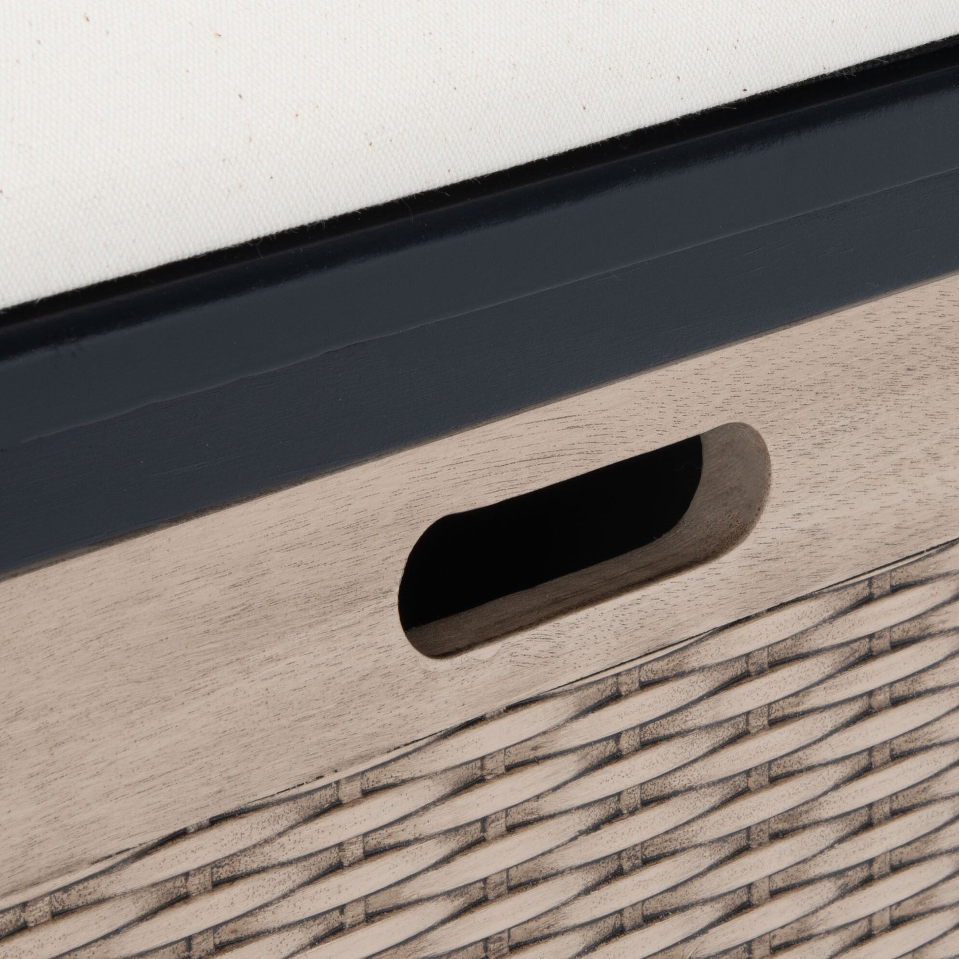 This Cushion Storage Bench performs double duty as a stylish storage solution and perfect seating in an entryway or mud room. Landers gives your decor a touch of contemporary farmhouse charm with its finish and three spacious basket drawers.