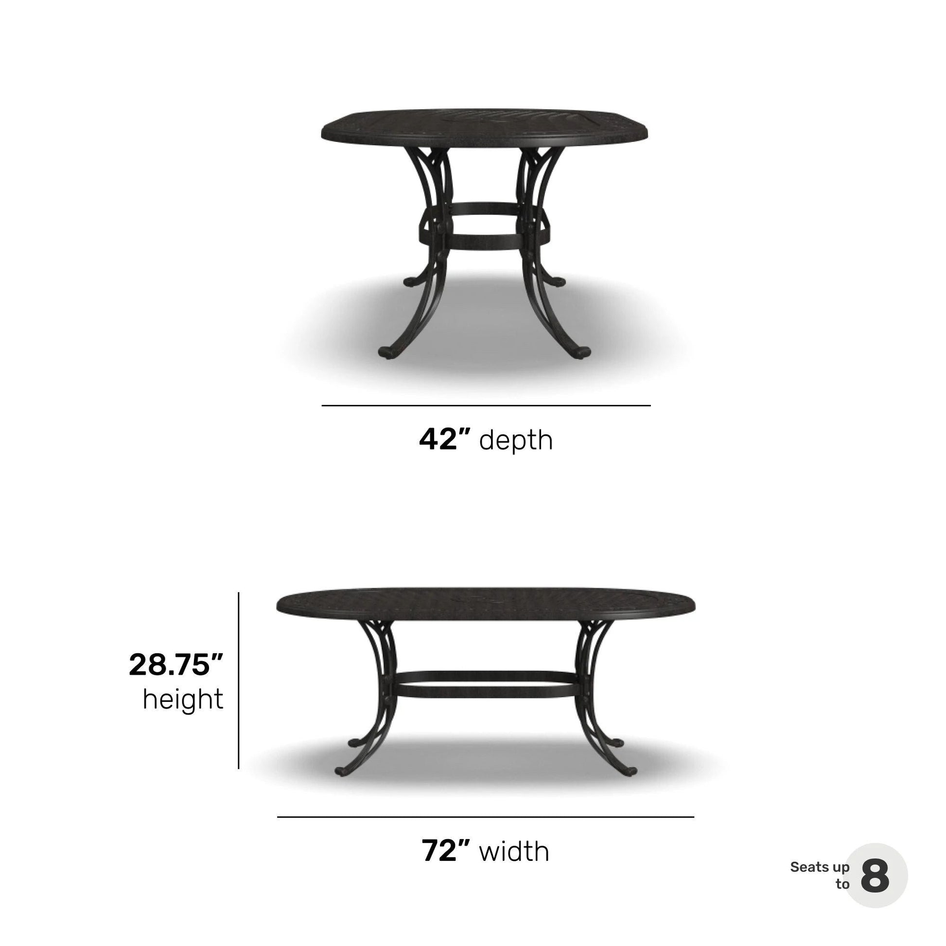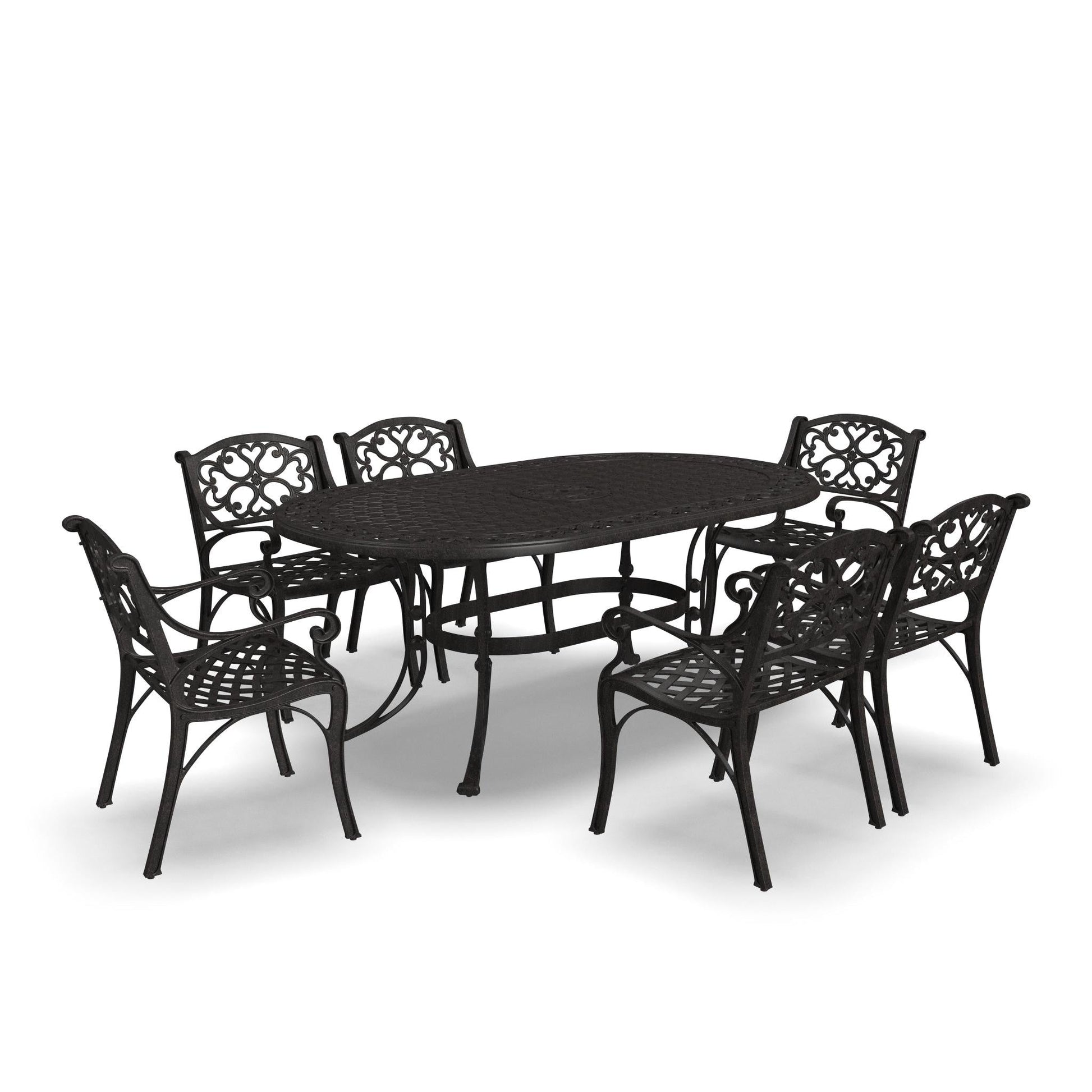 Turn an ordinary outdoor space into an oasis with this Homestyles Sanibel Outdoor Dining Set. Consisting of a 72' oval dining table and six armchairs, this set is constructed with bronze powder-coated aluminum for low-maintenance and lasting durability season after season. Simply add your own chair cushions and umbrella to create a seating arrangement that allows you to enjoy the great outdoors.