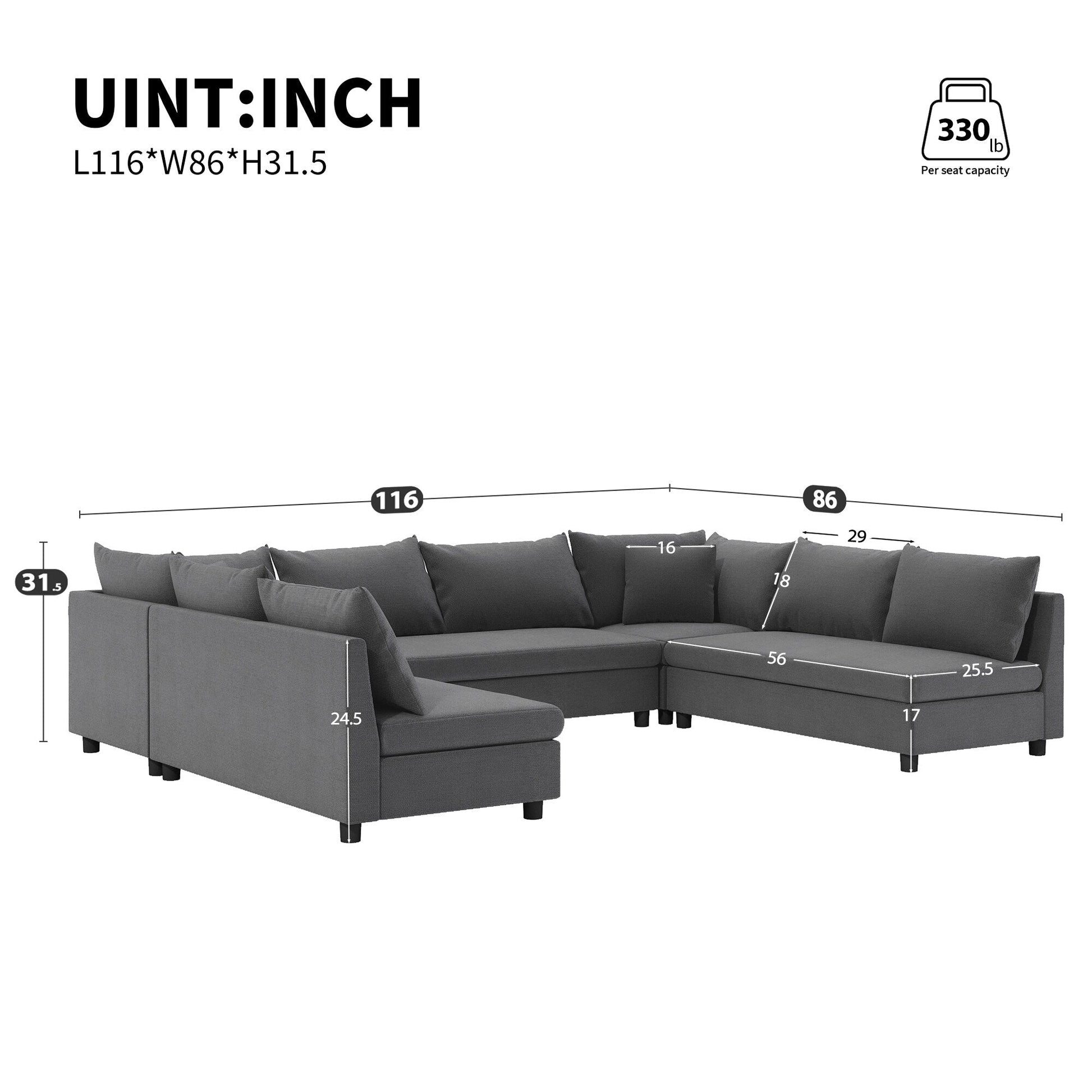 Sectional Sofa,Reversible U Shaped Chenille Couch Set,Free Combination,Oversized...