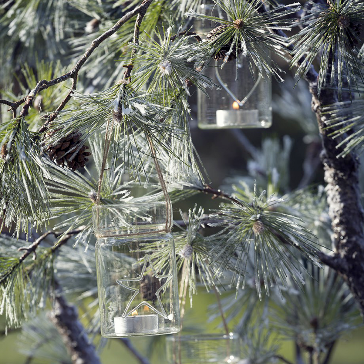 Ensemble de 3 petits vases NICITY à suspendre. Leur motif en relief de cœur, étoile et sapin de Noël apportera une touche festive et épurée à votre intérieur. Ils s'intégreront facilement dans un sapin de Noël ou en suspension devant une fenêtre. Leur transparence mettra en valeur toutes les petites décorations végétales comme des fleurs, des bougies chauffe-plats (sous surveillance et suspendues à des branches résistantes) ou encore des figurines de Noël.