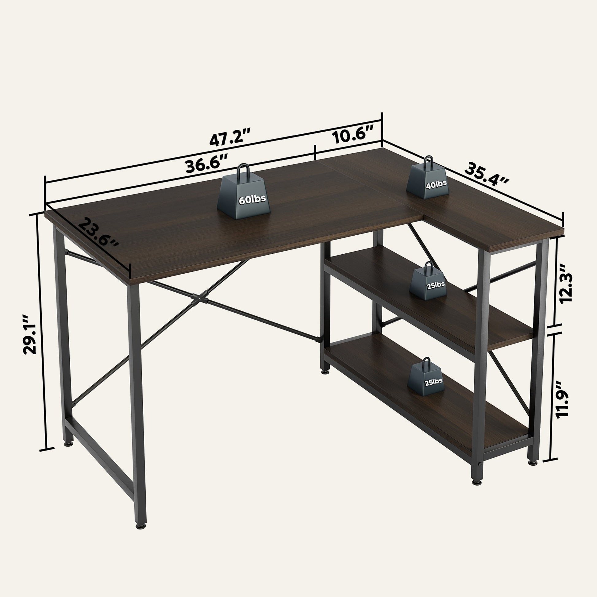 Small L Shaped Desk with Storage Shelves Corner Computer Desk