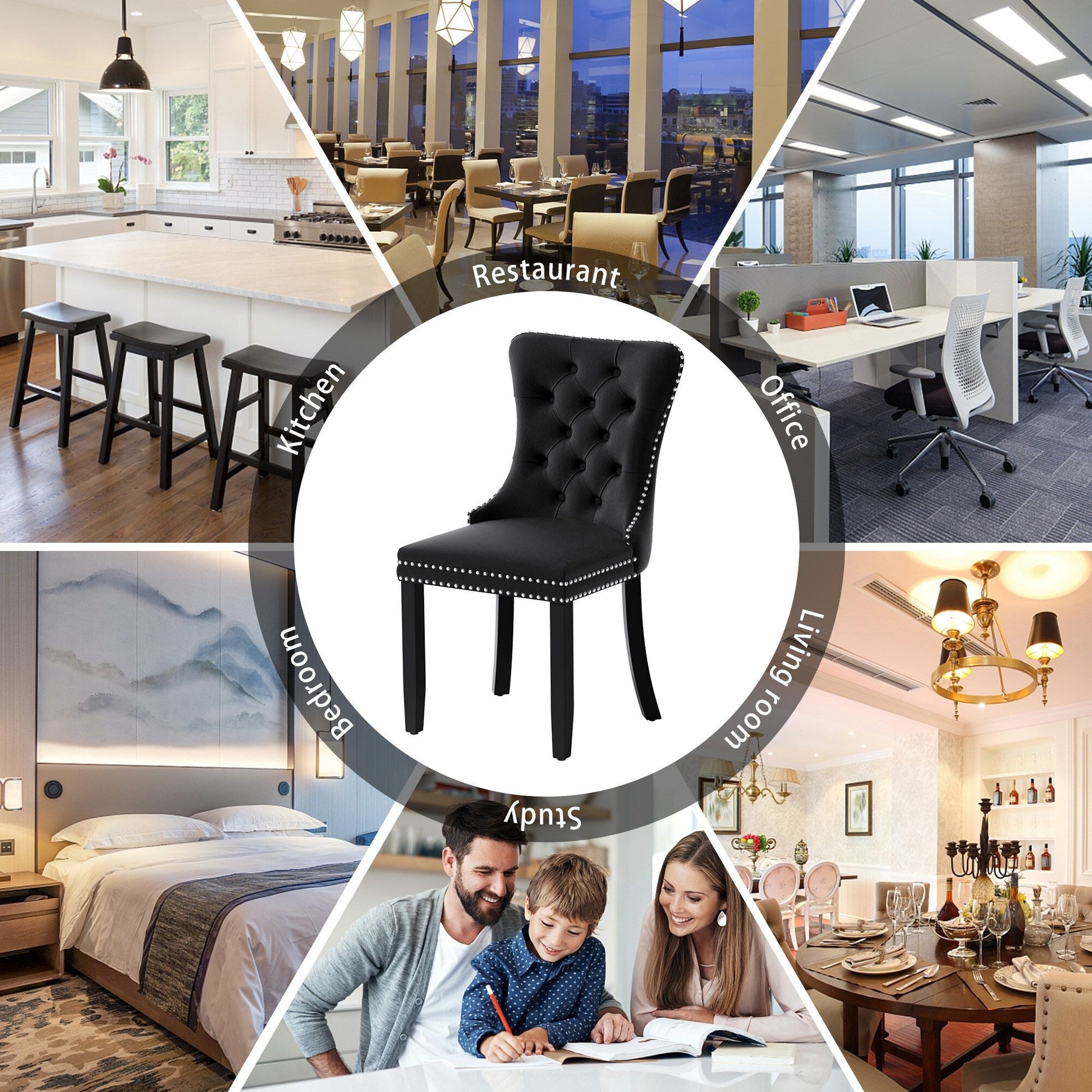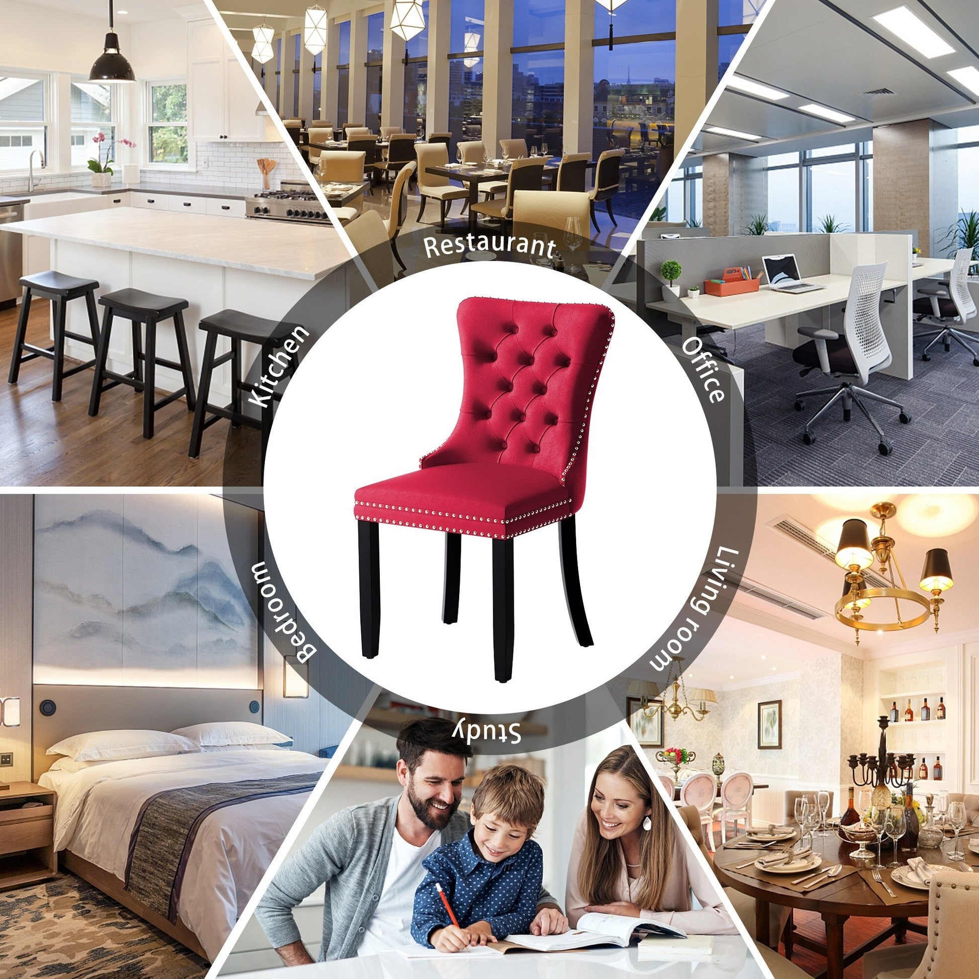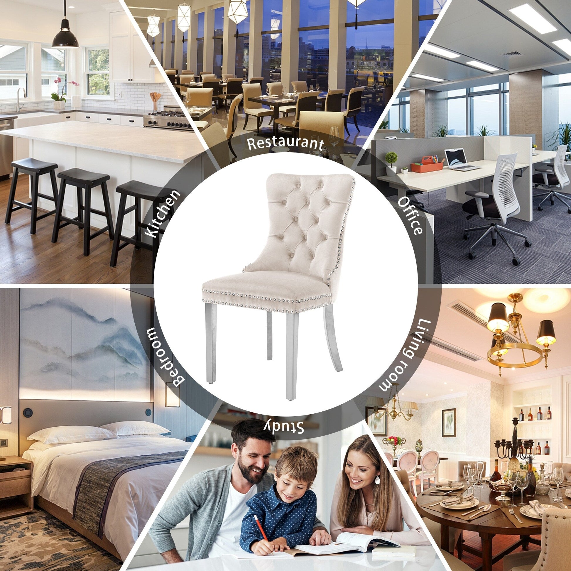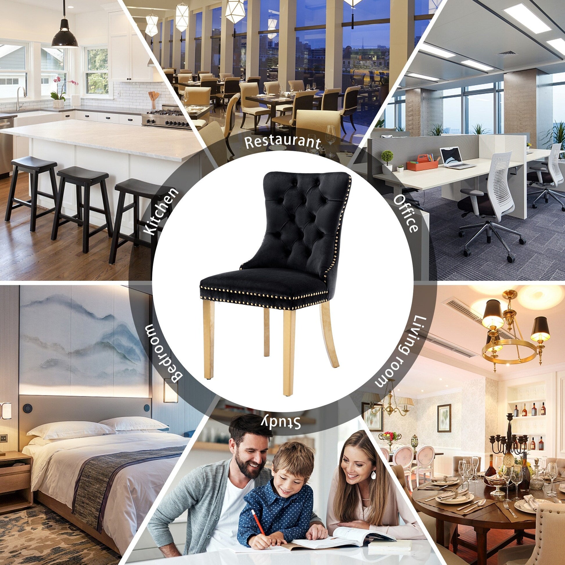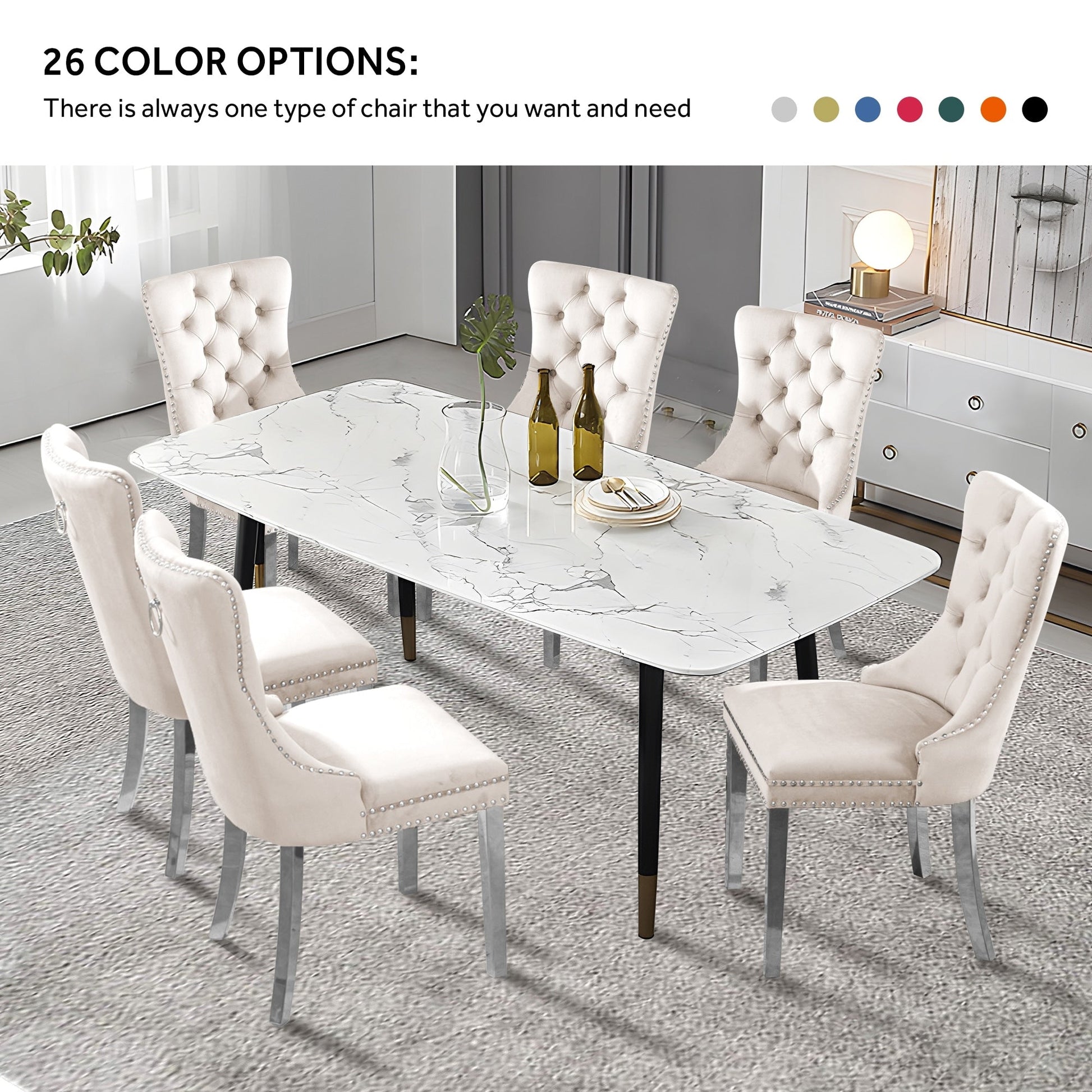 These wingback dining chairs are made of high-quality velvet fabric, which has super wear resistance and will not fade, the fabric is thick and luxurious, the touch is very delicate. This velvet dining chairs set featuring a very modern mid-century look. This dining chair set is equipped with high backrest for a strong comfortable back support. Plenty decorative rivet inset around cushion and back not only make it looks noble and elegant but also give the whole chair a feeling of exquisite luxury. We provide assembly instructions and assembly videos. If you have any questions, please contact us.