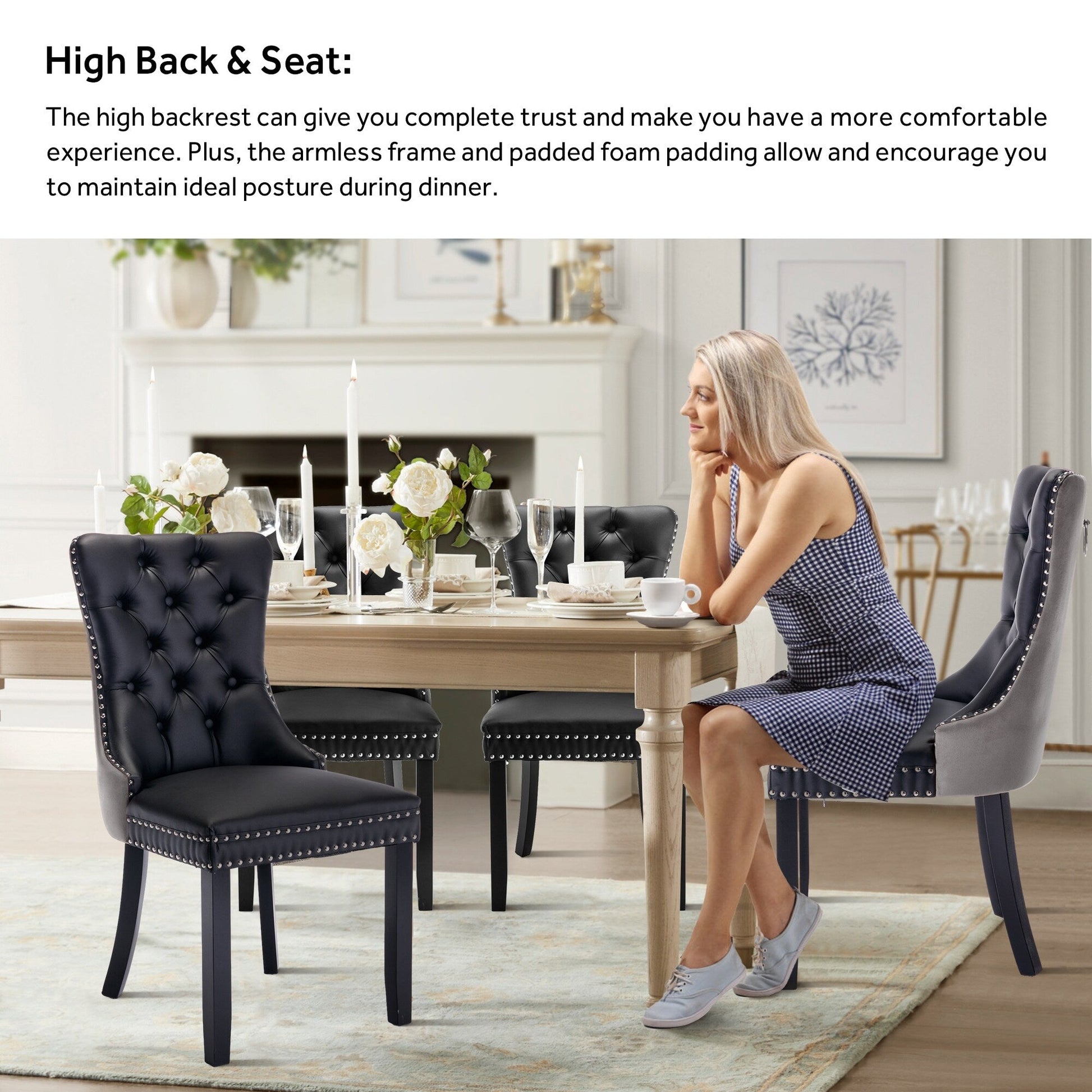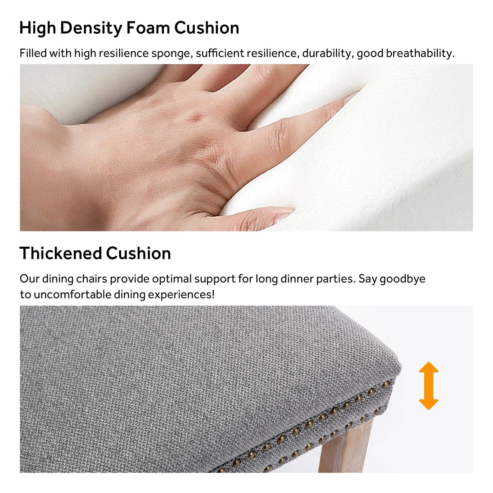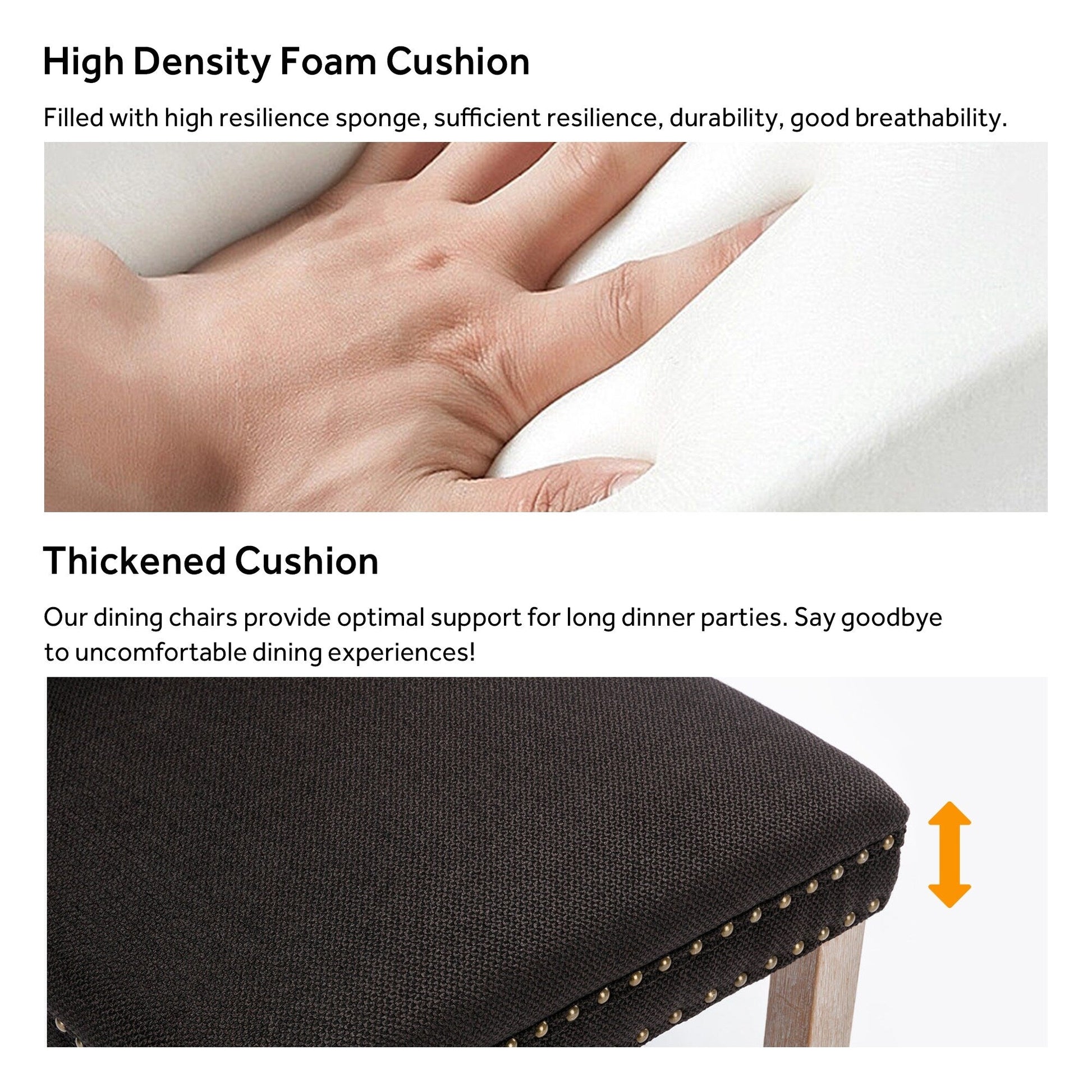 - Sturdy Upholstered Dining Chairs: The chair's frame and legs are made of solid wood with enough security to hold up to 300 pounds.