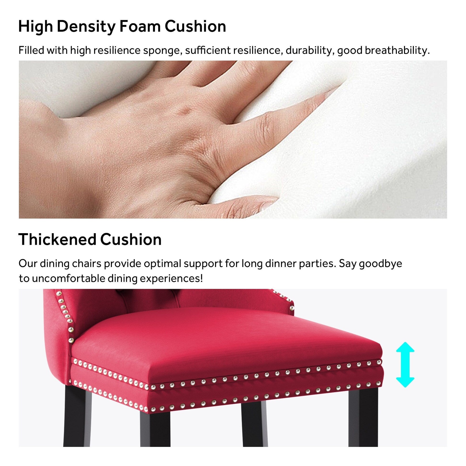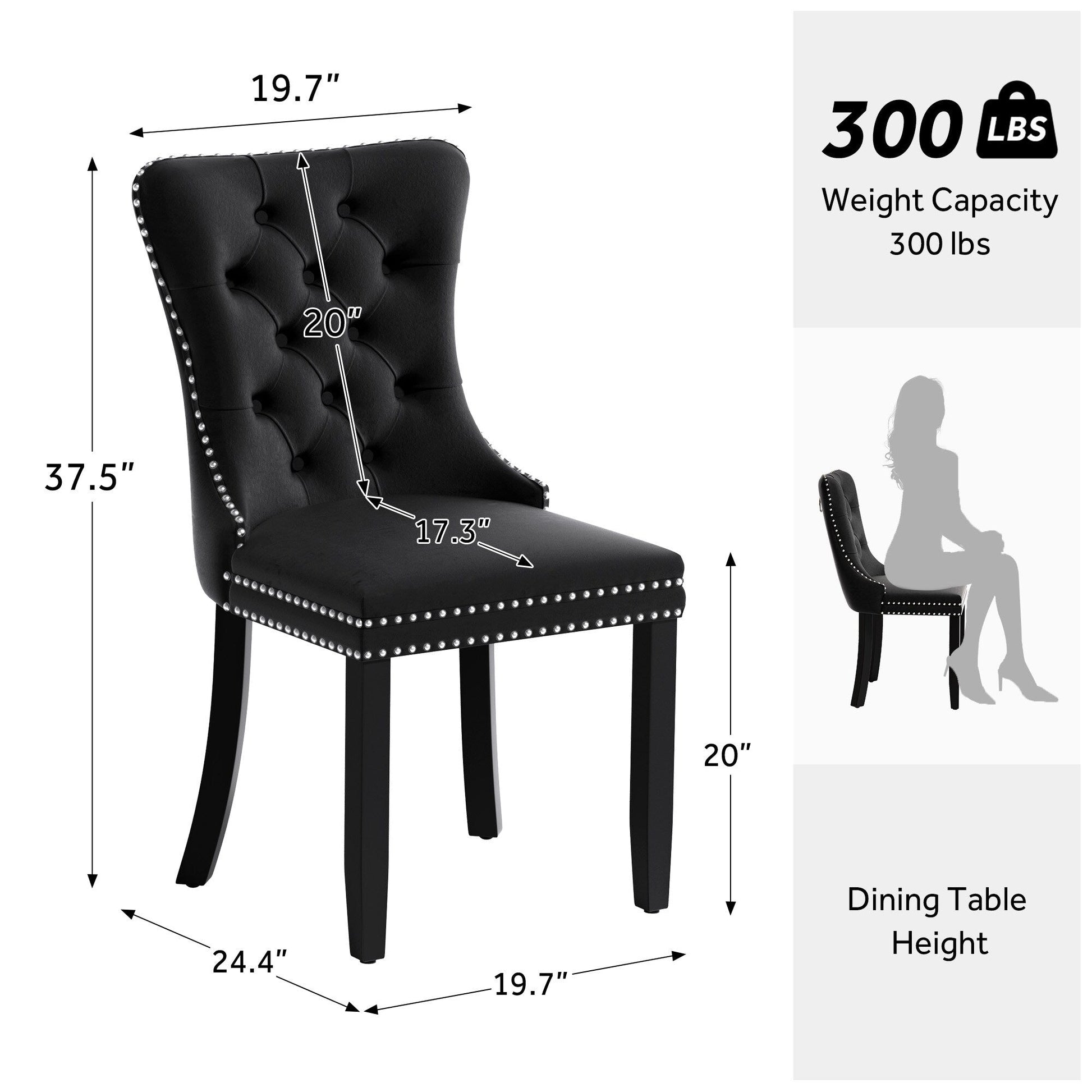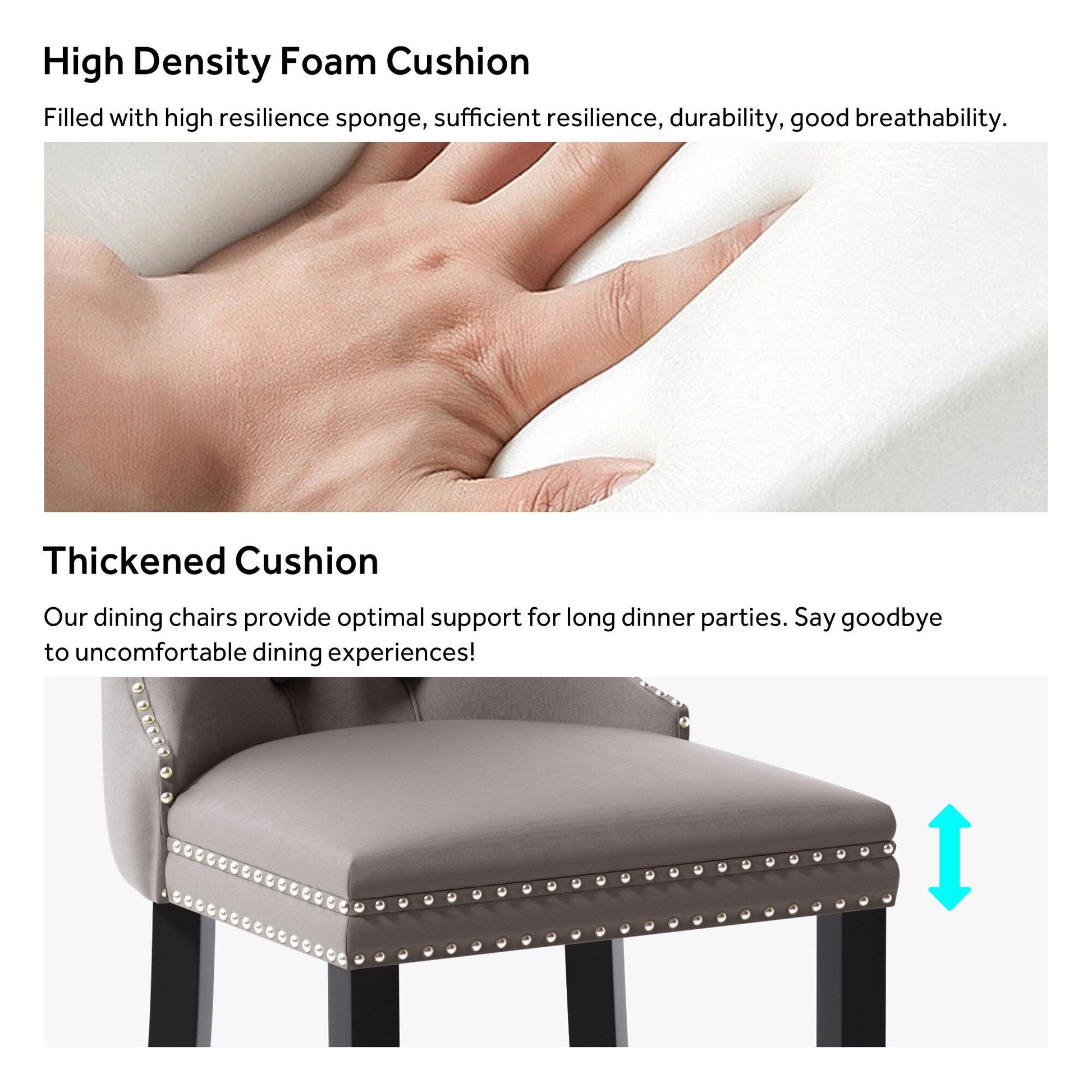- Sturdy Upholstered Dining Chairs: The chair's frame and legs are made of solid wood with enough security to hold up to 300 pounds.