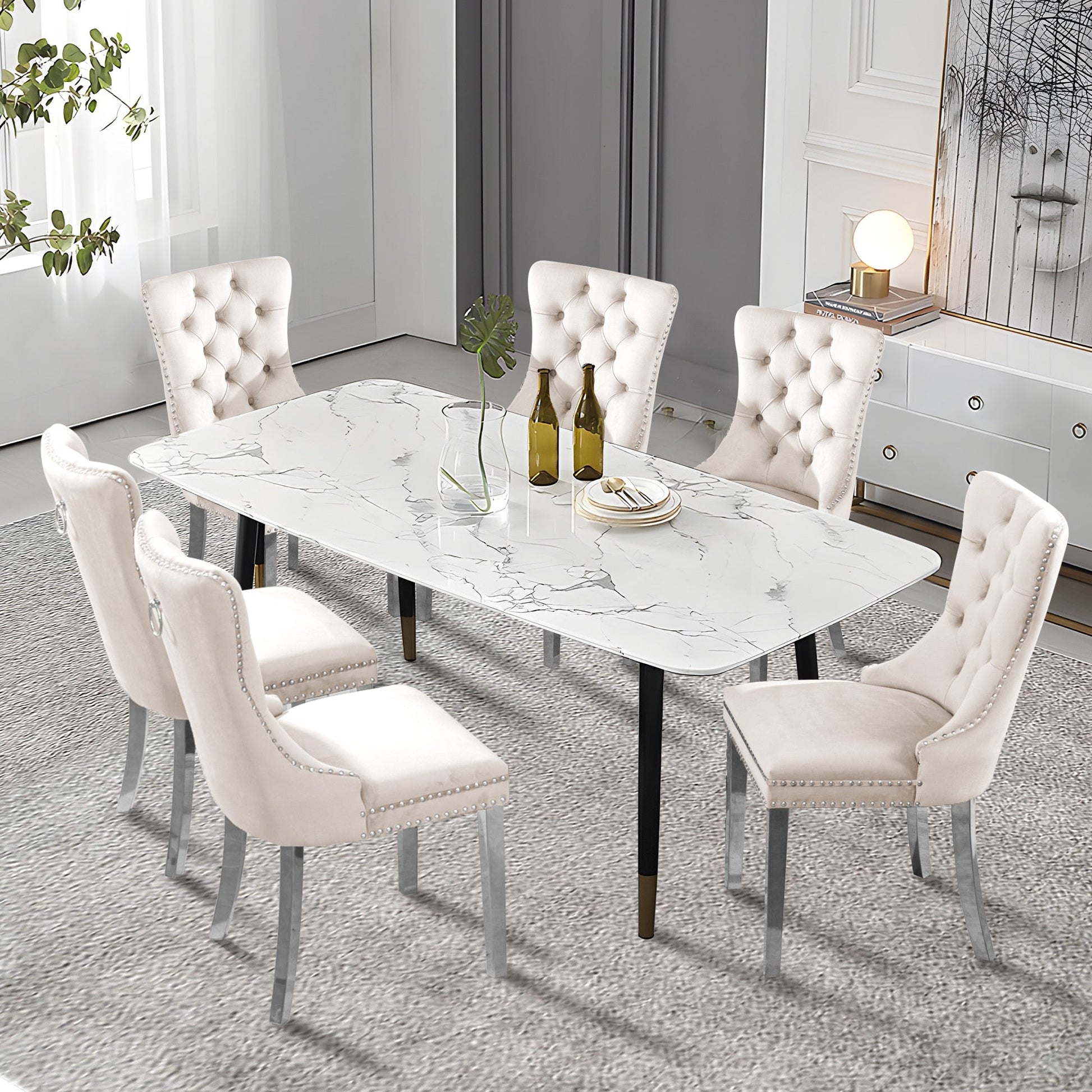 Upholstered Tufted Velvet Dining Chair with Solid Wood Legs Set of 6