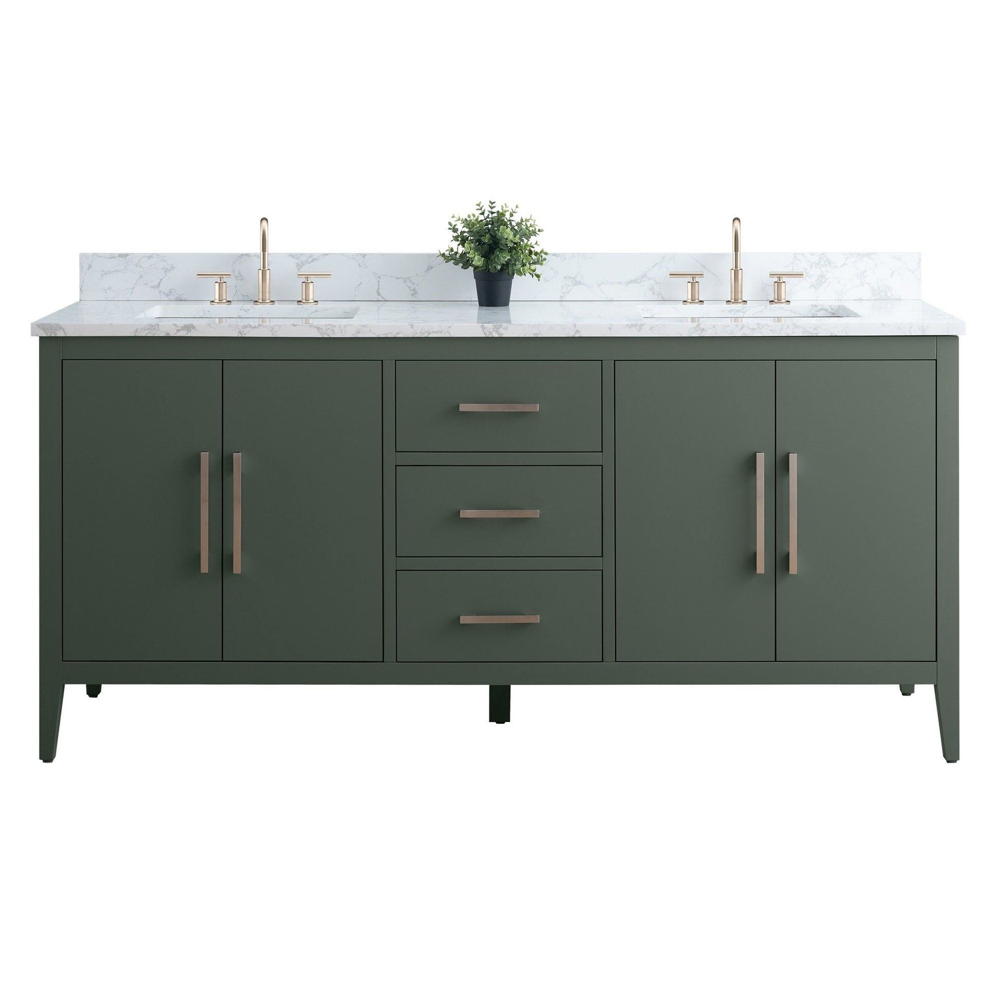 Vanity Art 72 Double Sink Bathroom Vanity Cabinet with Engineered Marble Top