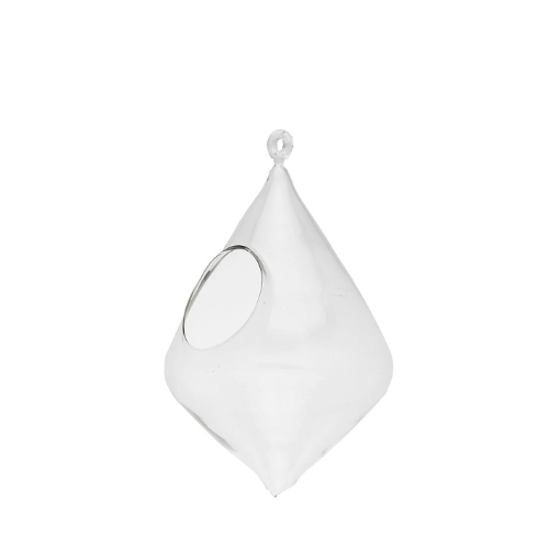 Vase en verre à suspendre dans le vide et à garnir de mousse et de fleurs. Il s'accorde particulièrement bien avec les plantes grasses grimpantes. Vous pouvez également les décorer de figurines de Noël ou de Pâques à l'intérieur.